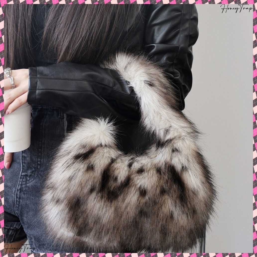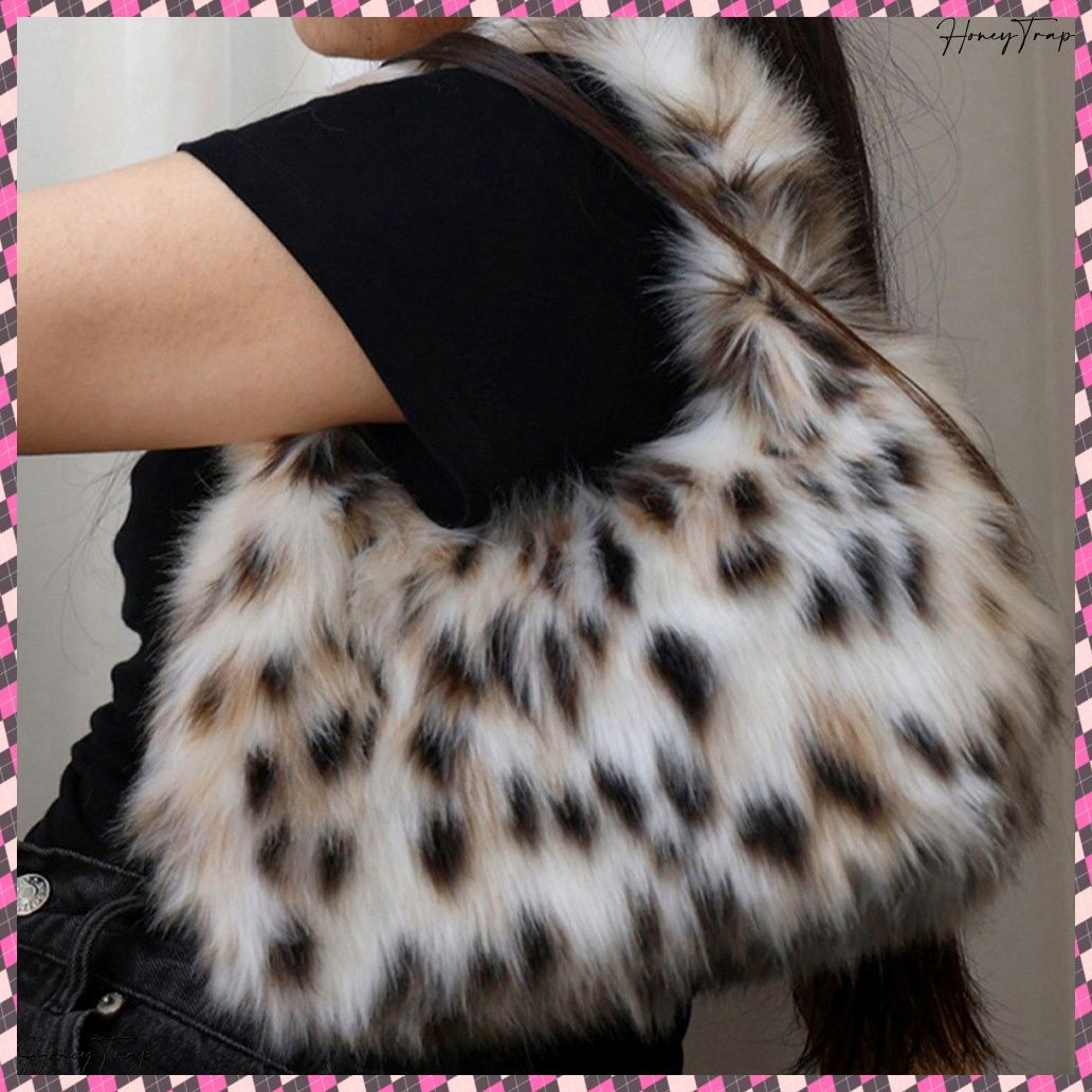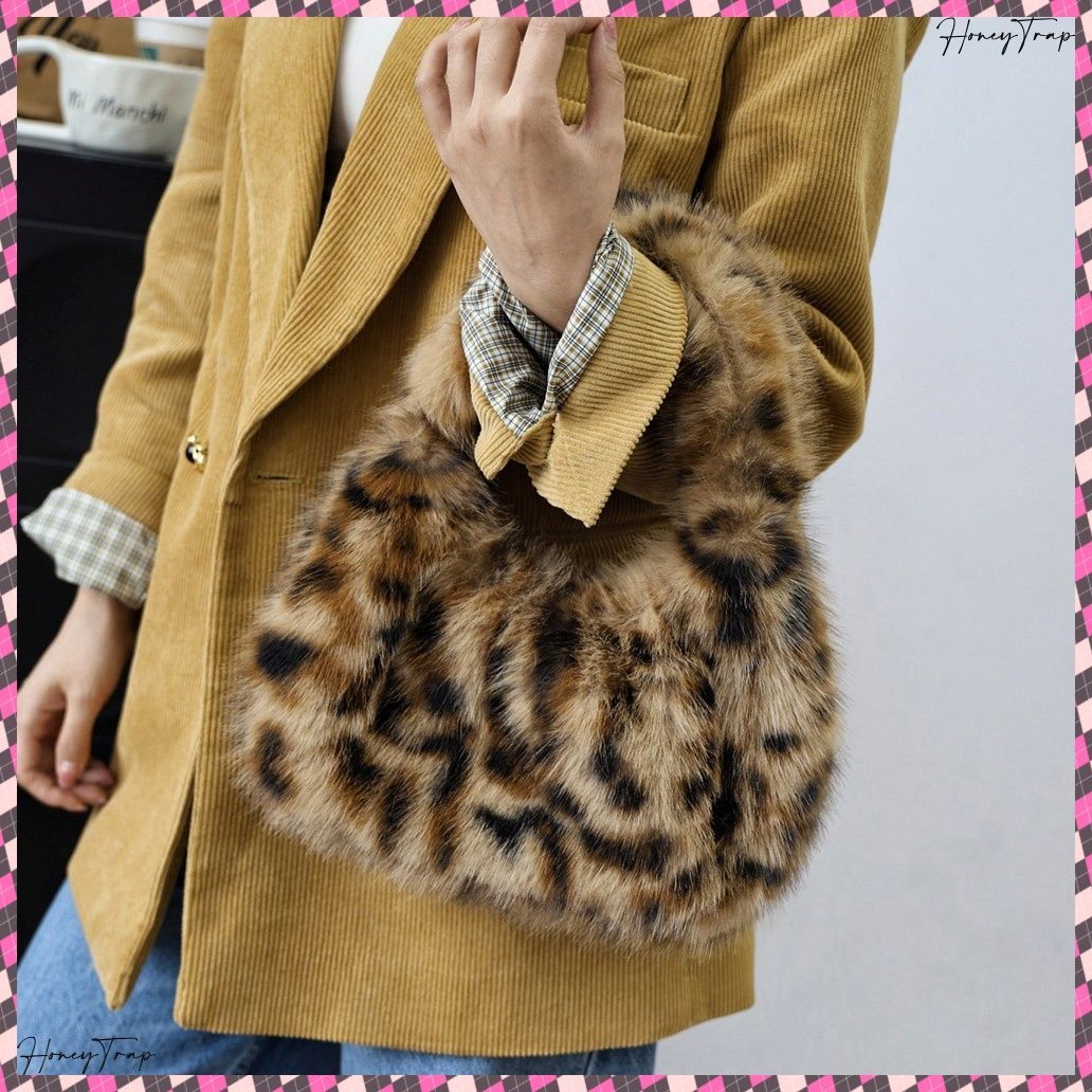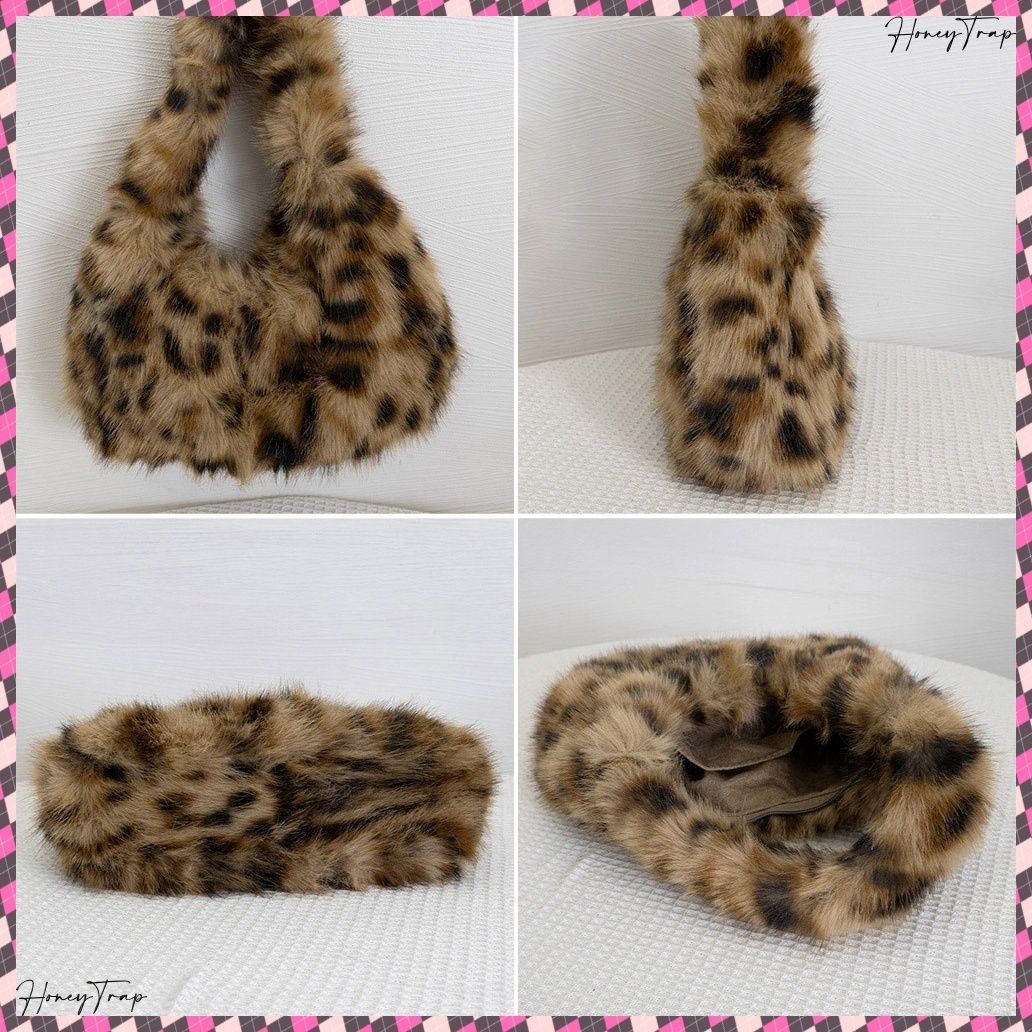 ふわふわのフェイクファー素材が存在感抜群のアニマル柄バッグ。