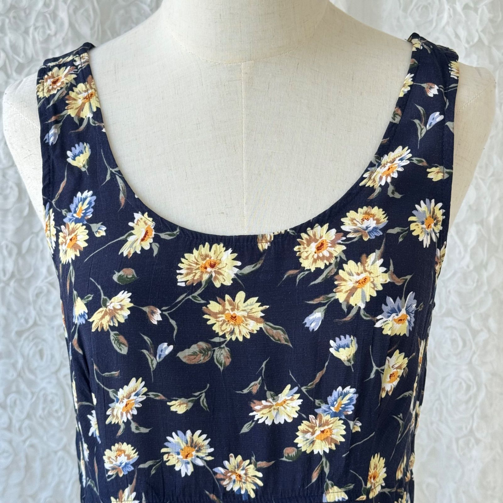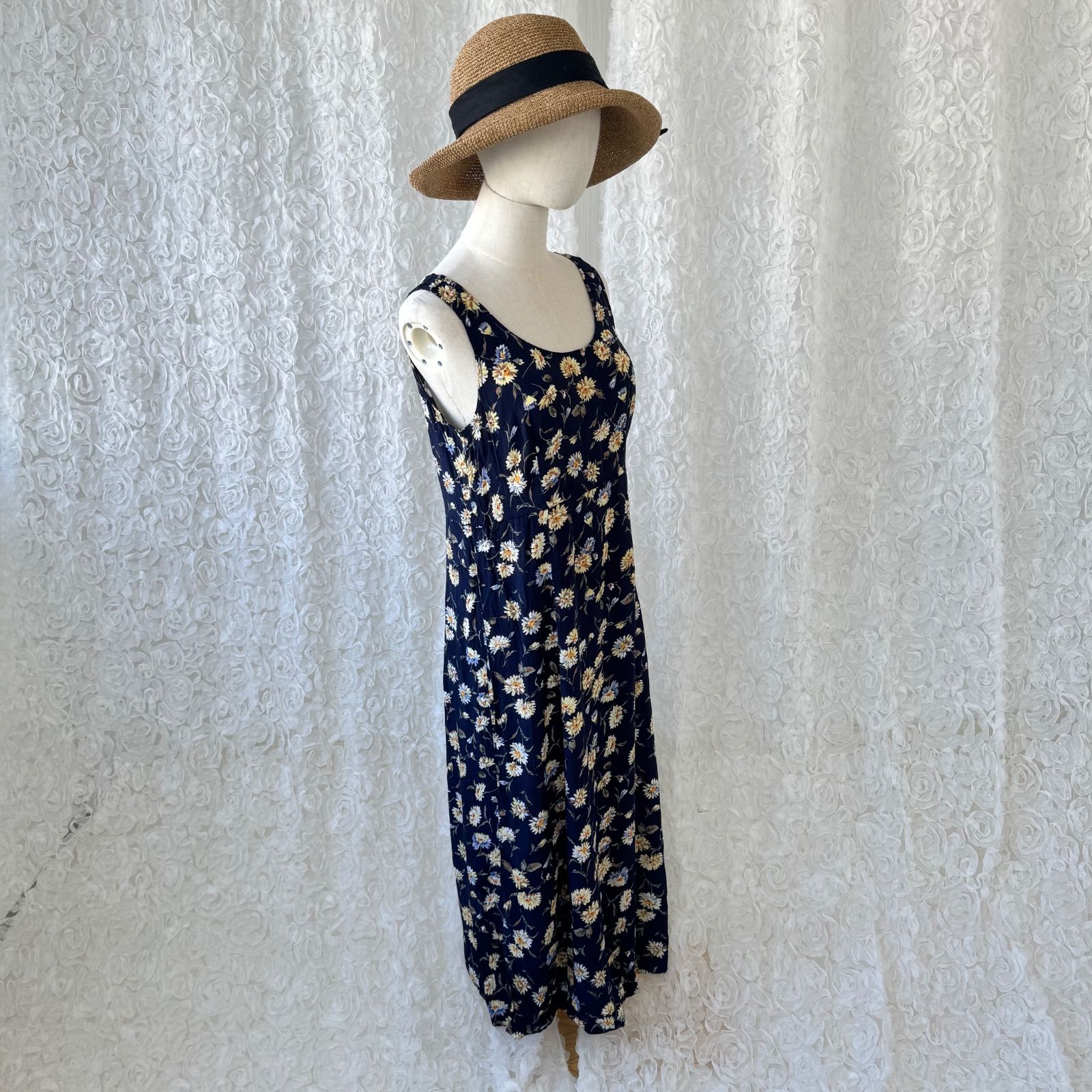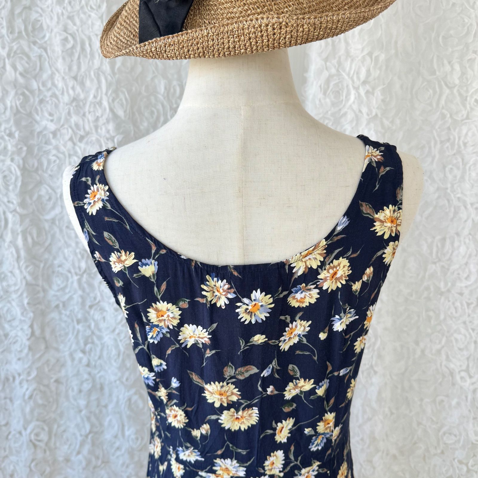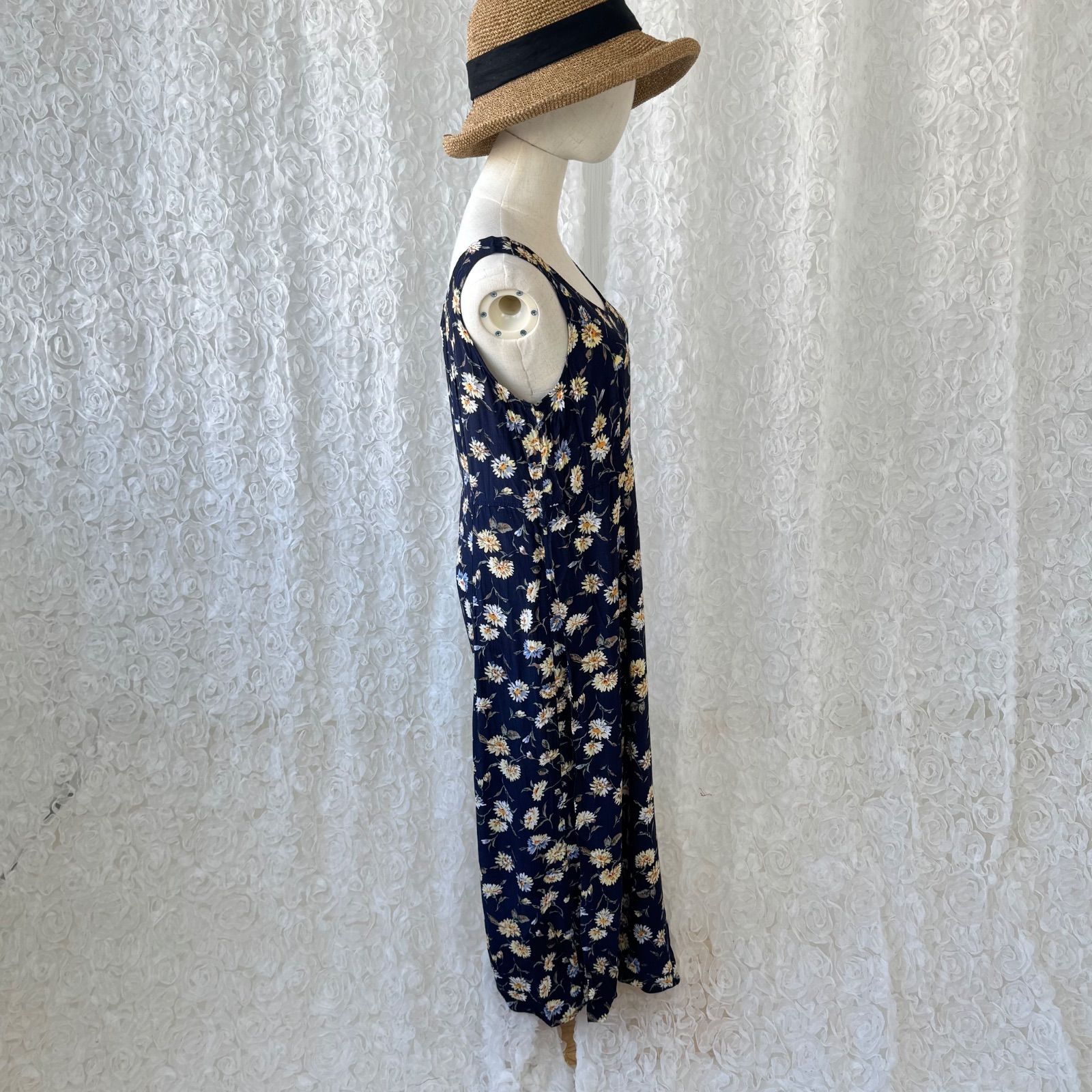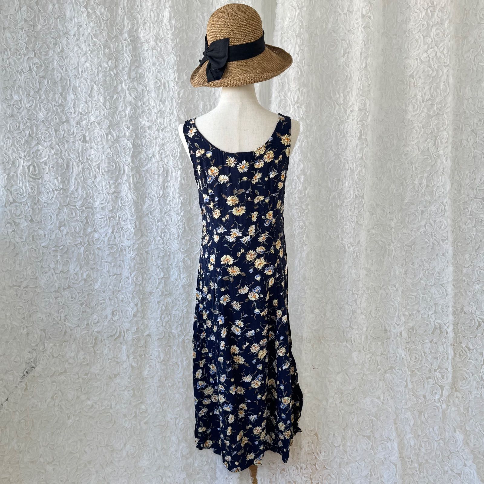 ネイビー地に咲くデイジー柄が可憐なR&K ORIGINALSのレーヨンワンピースです。