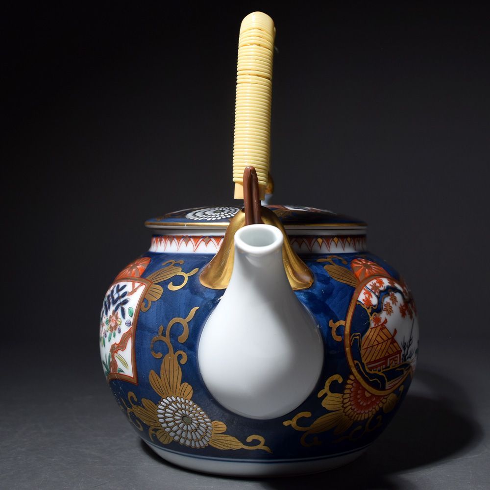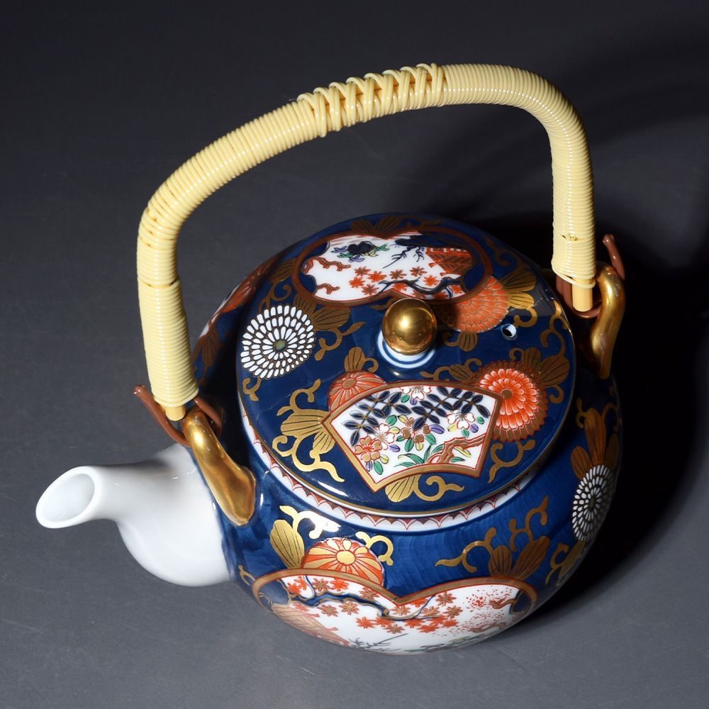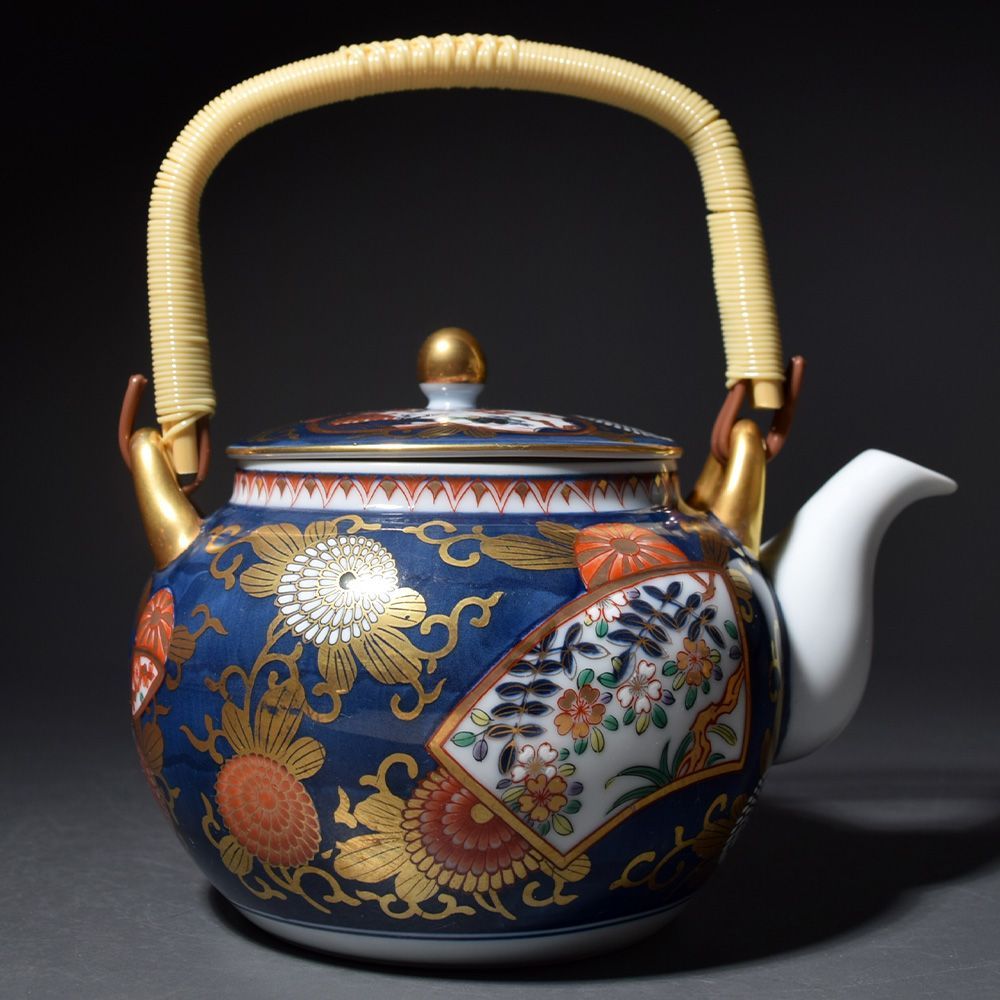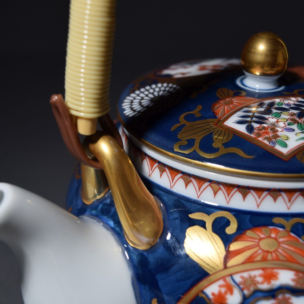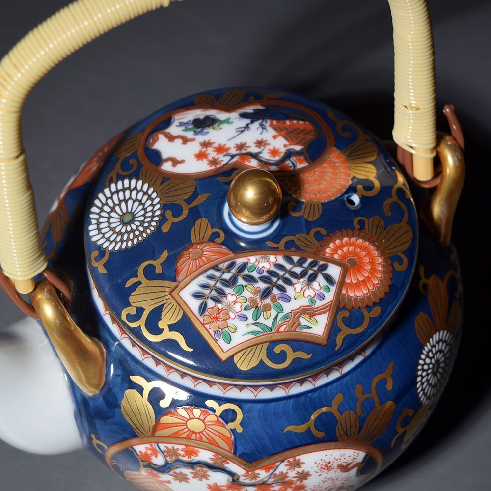 有田焼の古伊万里様式の急須、装飾的なデザインと金色の取っ手が特徴。