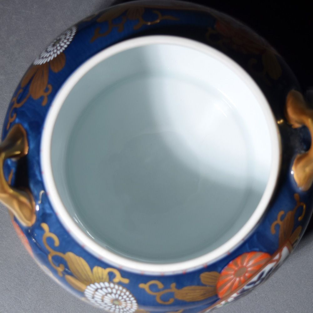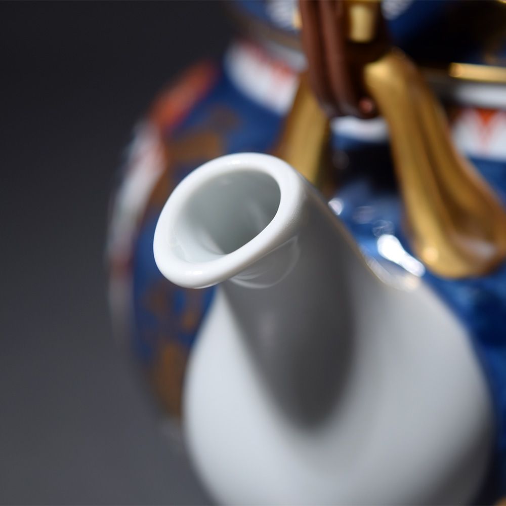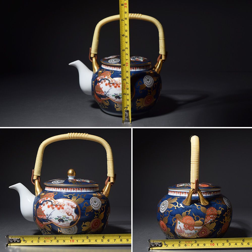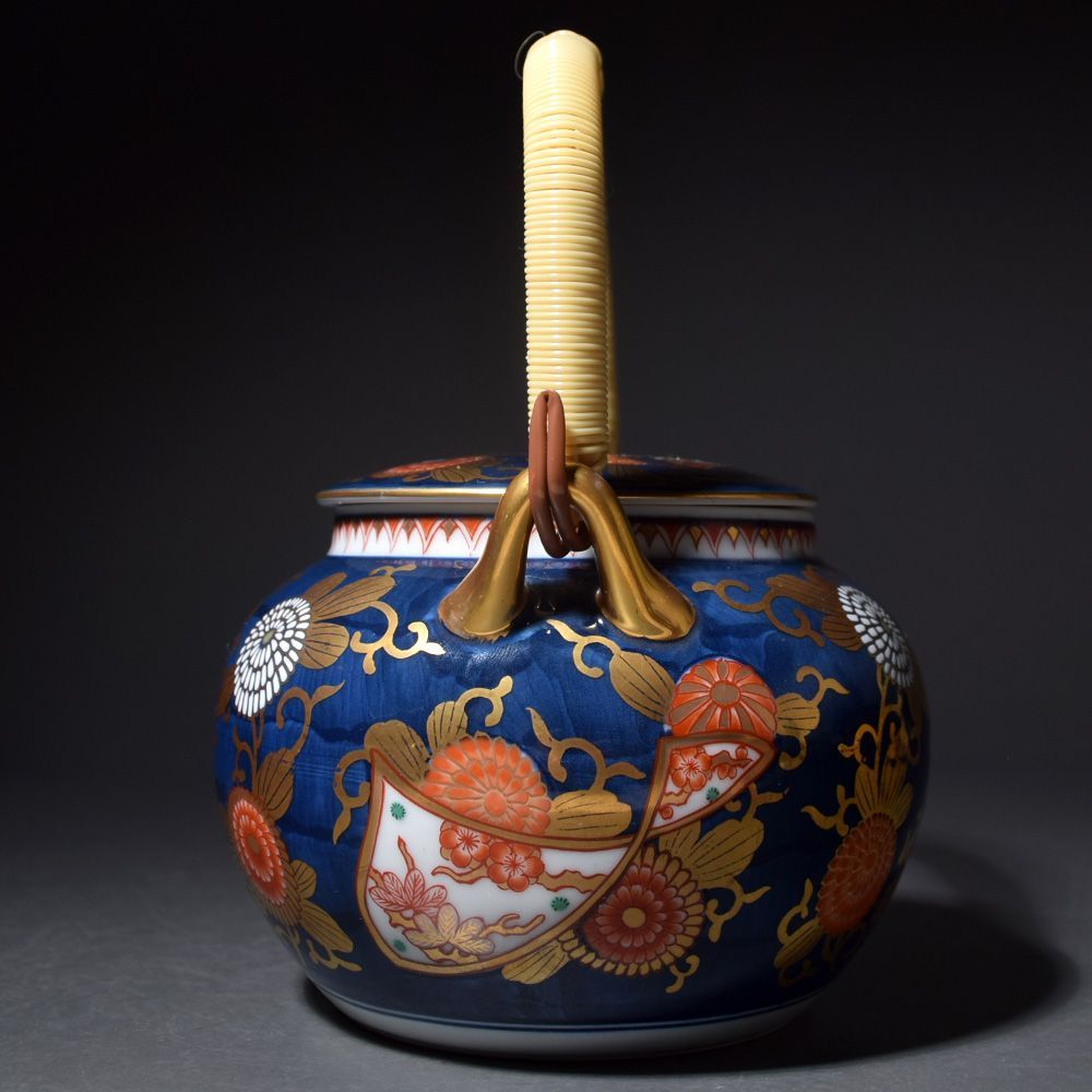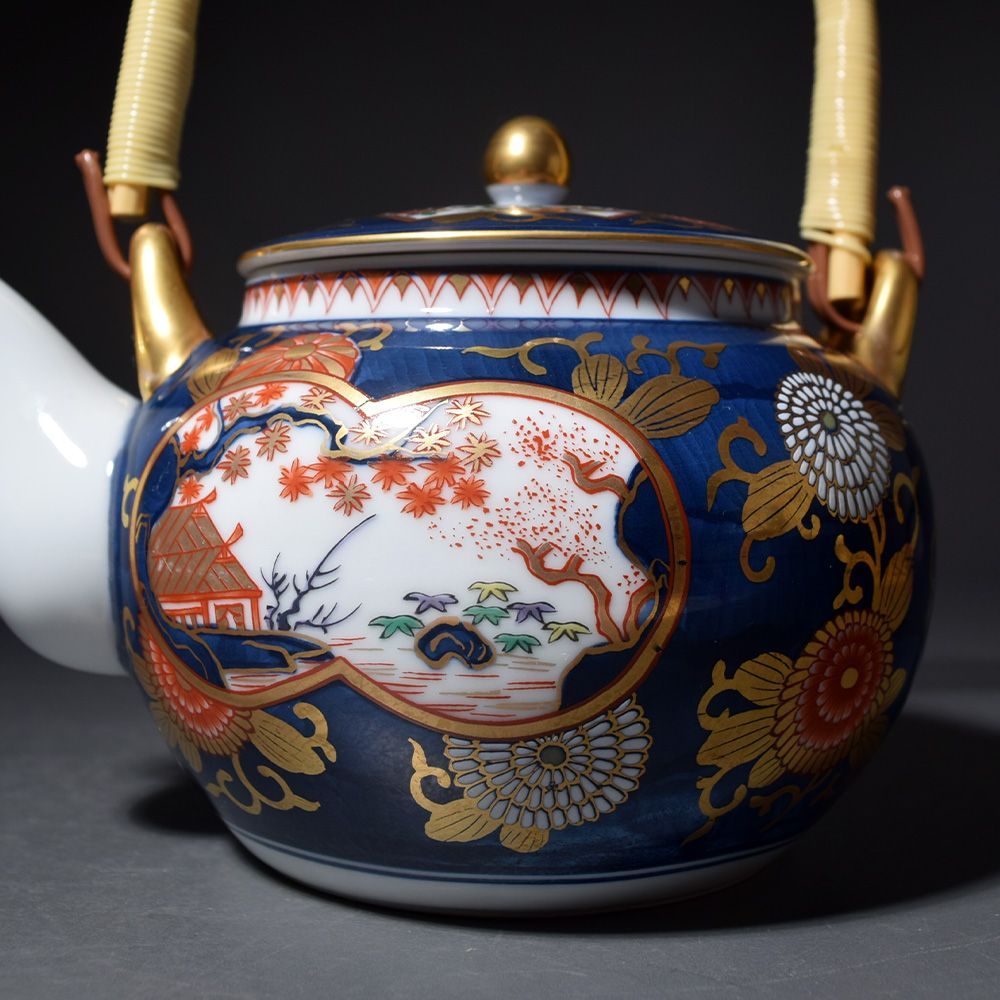 有田焼の古伊万里様式の急須、装飾的なデザインと金色の取っ手が特徴。