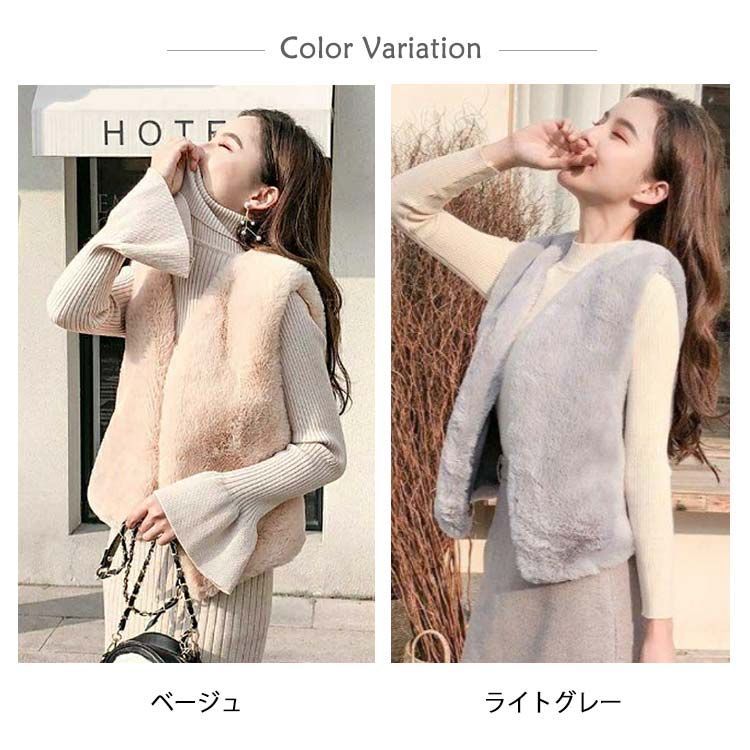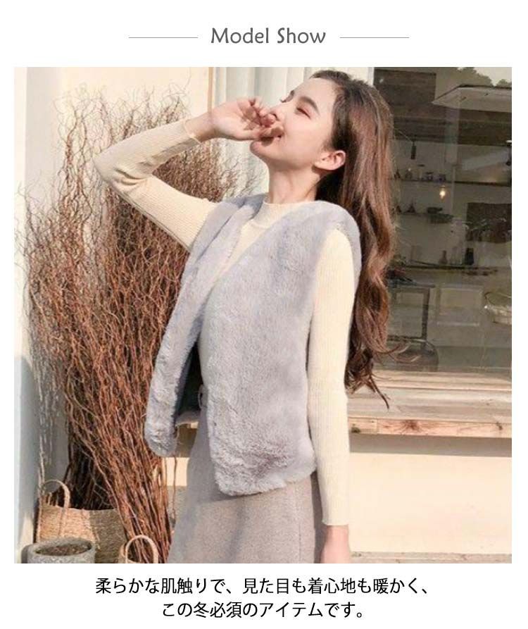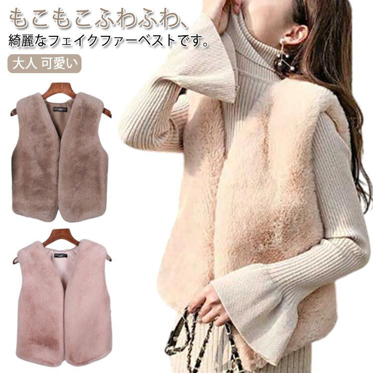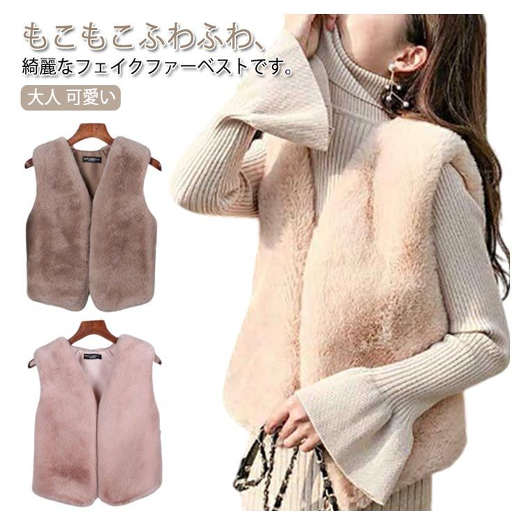 もこもこふわふわ、綺麗なフェイクファーベストです。