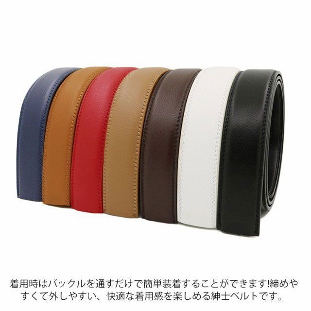 着用時はバックルを通すだけで簡単装着することができます!締めやすくて外しやすい、快適な着用感を楽しめる紳士ベルトです。