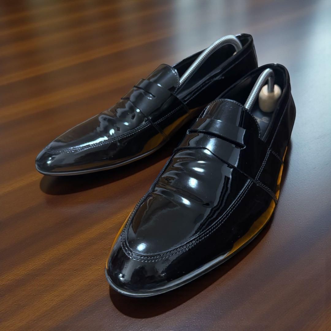 エナメルレザー用のクリーナー、クリームで手入れ済み。