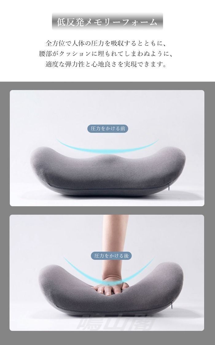 腰 クッション 車 背もたれクッション 腰枕 腰当てクッション 低反発 通気性 人間工学 車 シートクッション 運転席 オフィス 椅子 車用クッション カー用品 洗えるカバー