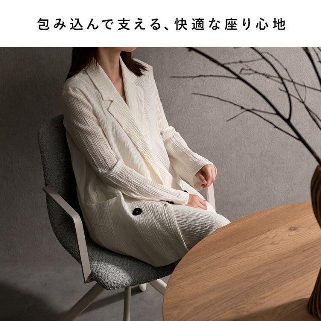 ダイニングチェア回転式椅子オートリターン同色2脚セット座面高さ47cm幅52cm奥行54cm高さ84cmもこもこブークレ生地ファブリック韓国風カフェ風回転チェア食卓椅子肘掛け付きキャスターなしおしゃれリビングチェアオフホワイト白グレーおうちカフェインテリア家具いすイスチェアー回転椅子回転チェア背もたれ付き肘付きダイニング用椅子食卓用カフェチェアインテリアチェアお洒落な椅子アームチェアデスクチェアパソコンチェア作業用椅子在宅勤務リモートワークテレワーク座面360度回転固定脚ホワイトスチール脚新生活一人暮らしワンルームダイニングリビング居間女子部屋オフィス店舗サロンシンプルモダンスタイリッシュ北欧風やわらかブークレー生地ゆったり快適くつろぎリラックス立ち座りしやすい座り心地がいいくすみカラー韓国インテリア韓国っぽ