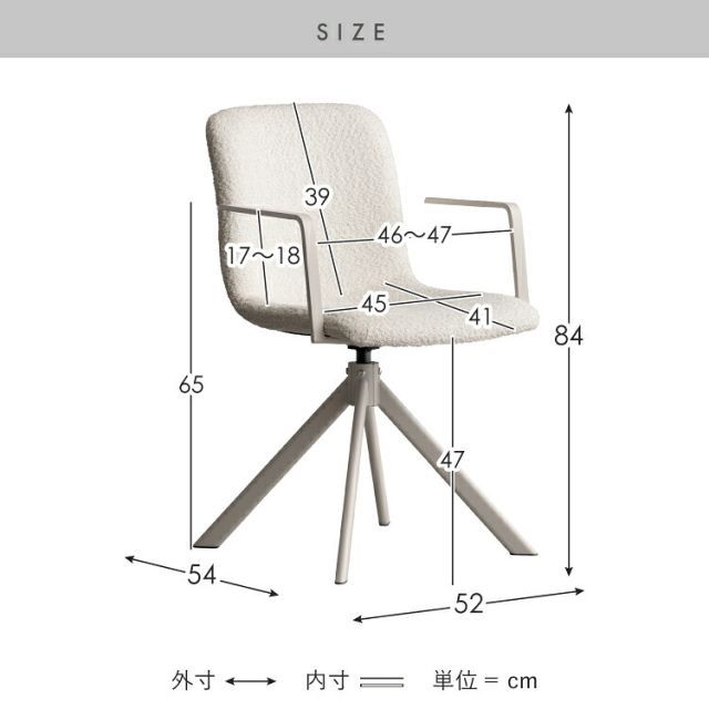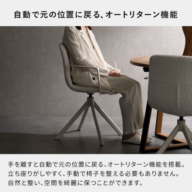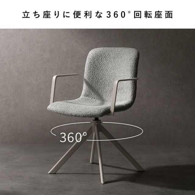 ダイニングチェア回転式椅子オートリターン座面高さ47cm幅52cm奥行54cm高さ84cmもこもこブークレ生地ファブリック韓国風カフェ風回転チェア食卓椅子肘掛け付きキャスターなしおしゃれリビングチェアオフホワイト白グレーおうちカフェ1脚単品インテリア家具いすイスチェアー回転椅子回転チェア背もたれ付き肘付きダイニング用椅子食卓用カフェチェアインテリアチェアお洒落な椅子アームチェアデスクチェアパソコンチェア作業用椅子在宅勤務リモートワークテレワーク座面360度回転固定脚ホワイトスチール脚新生活一人暮らしワンルームダイニングリビング居間女子部屋オフィス店舗サロンシンプルモダンスタイリッシュ北欧風やわらかブークレー生地ゆったり快適くつろぎリラックス立ち座りしやすい座り心地がいいくすみカラー韓国インテリア韓国っぽ