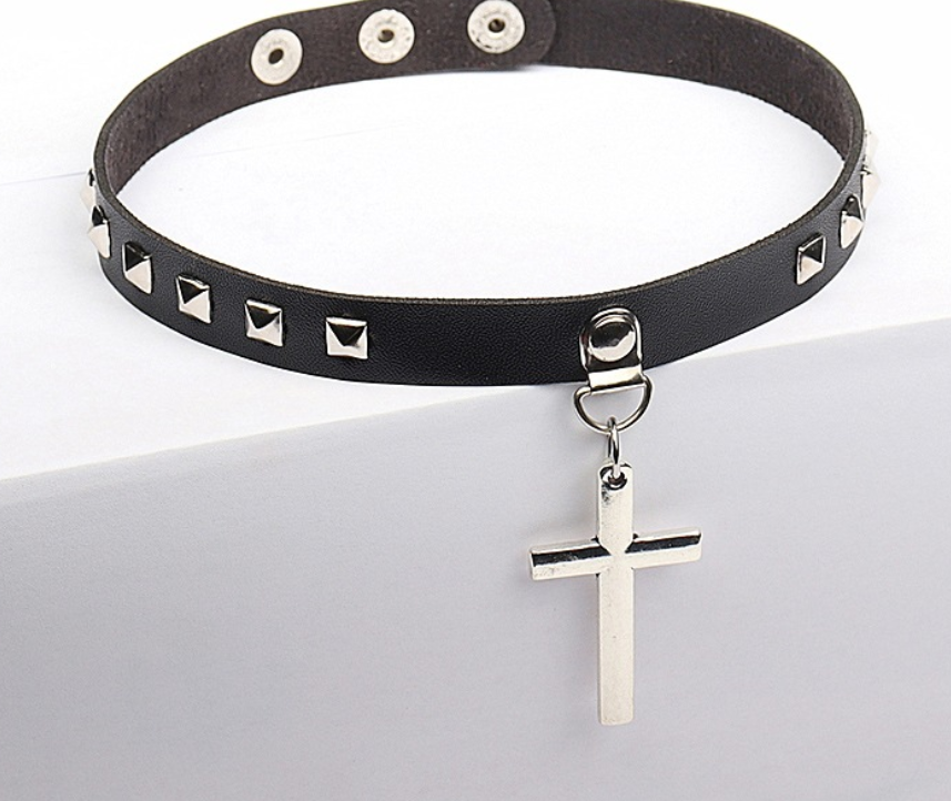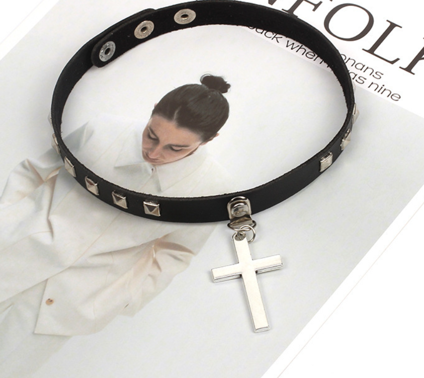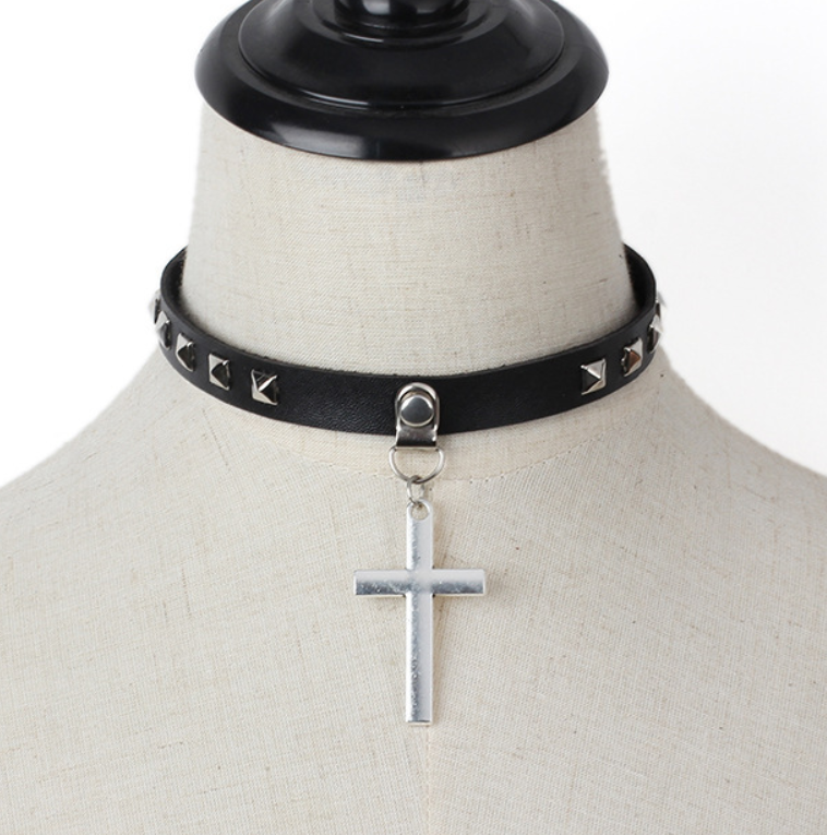 ○クロス(十字架)とスタッズのデザインのチョーカーです。