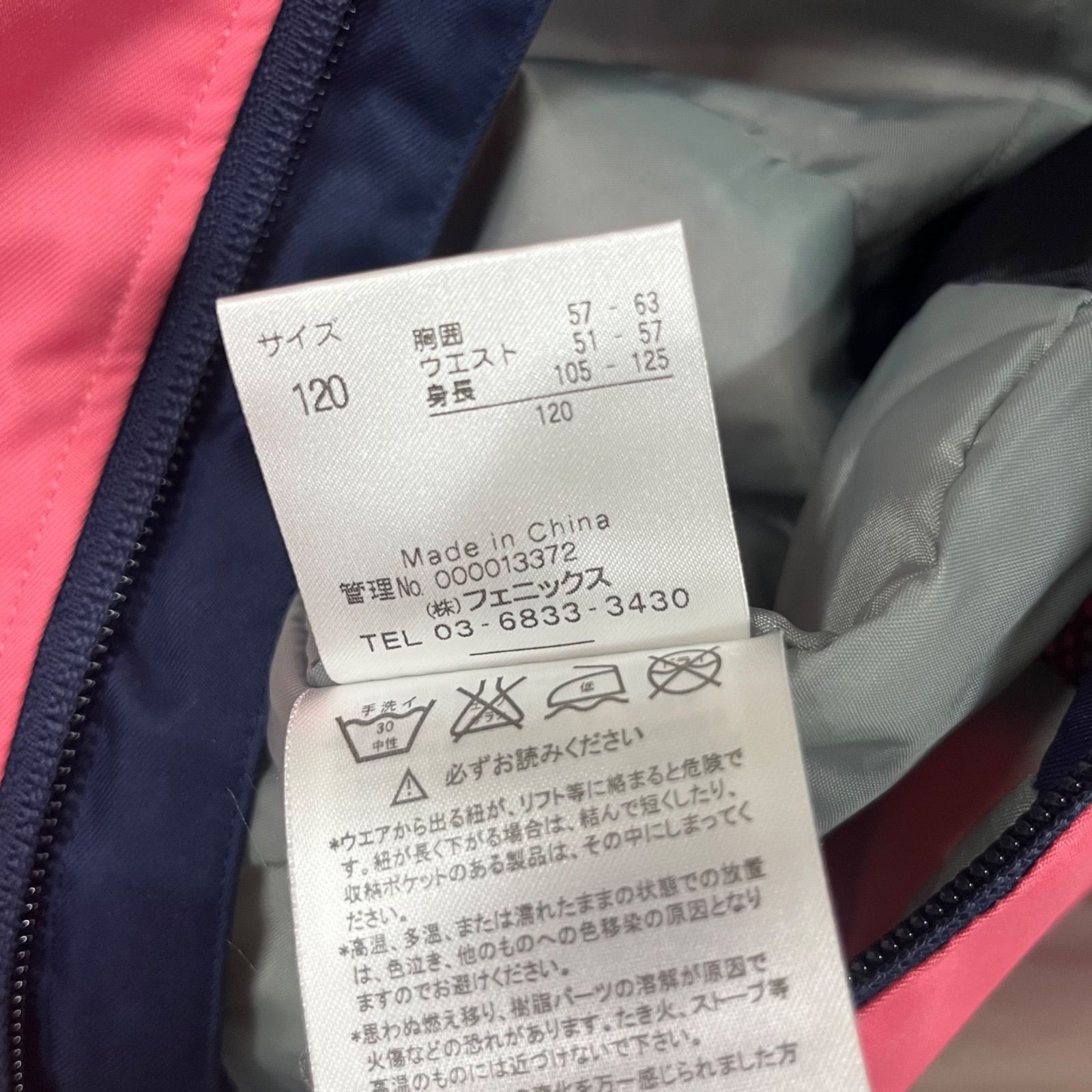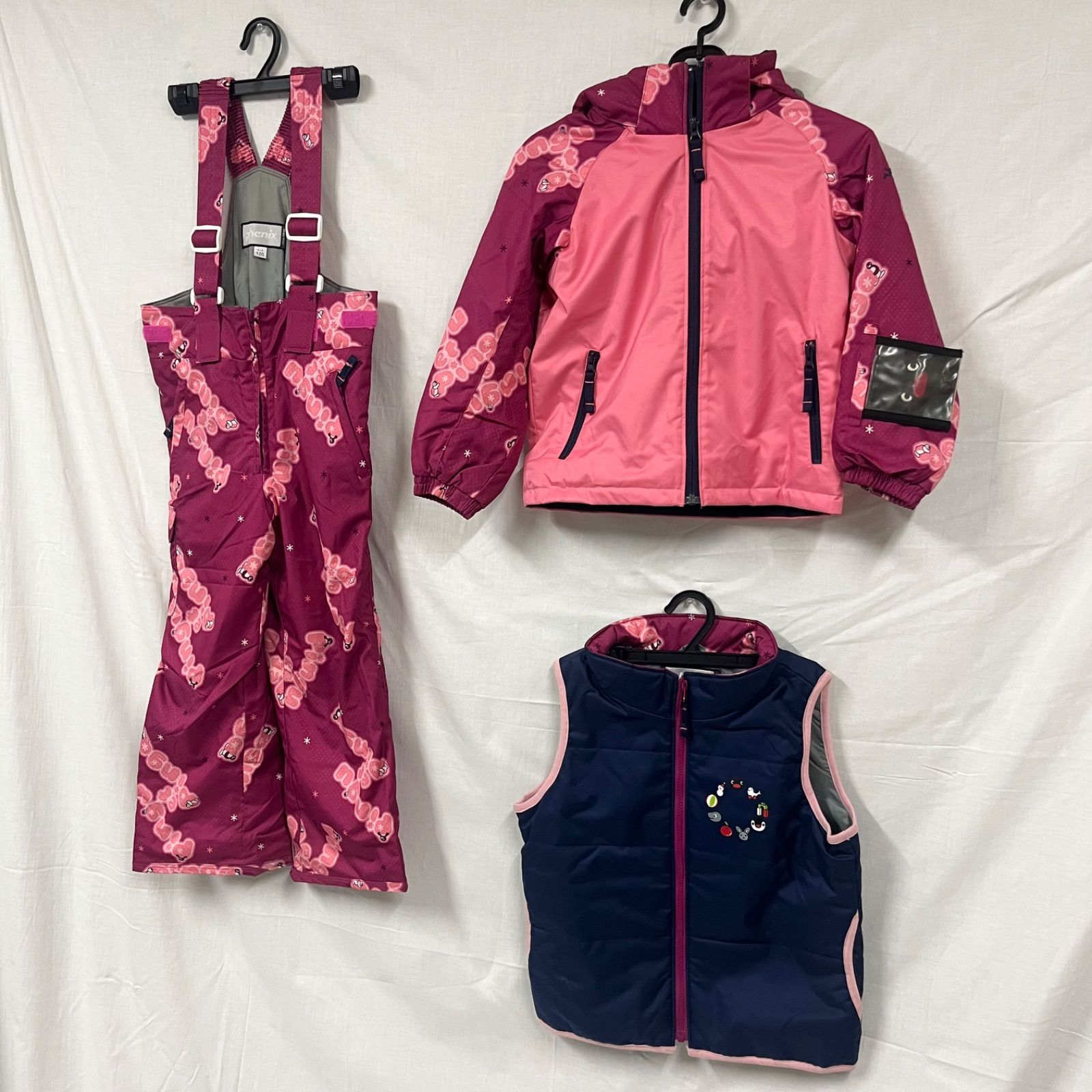 【中古品】 フェニックス 105~125cm 120サイズ サイズ調整機能付き ジュニア スキーウェア ピングー ロゴ キッズ 子ども スリーピース スノーウェア
