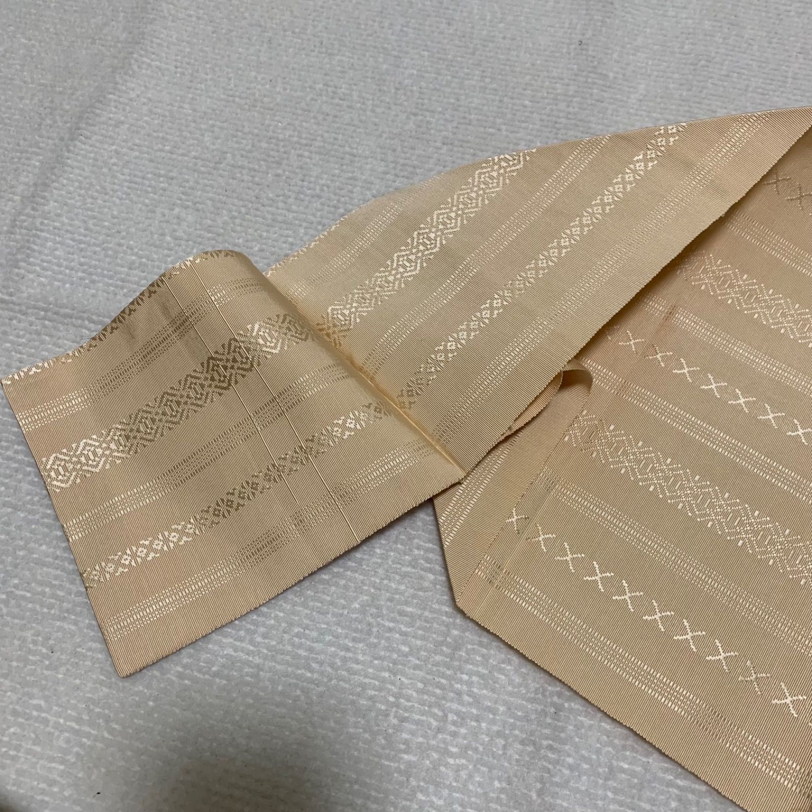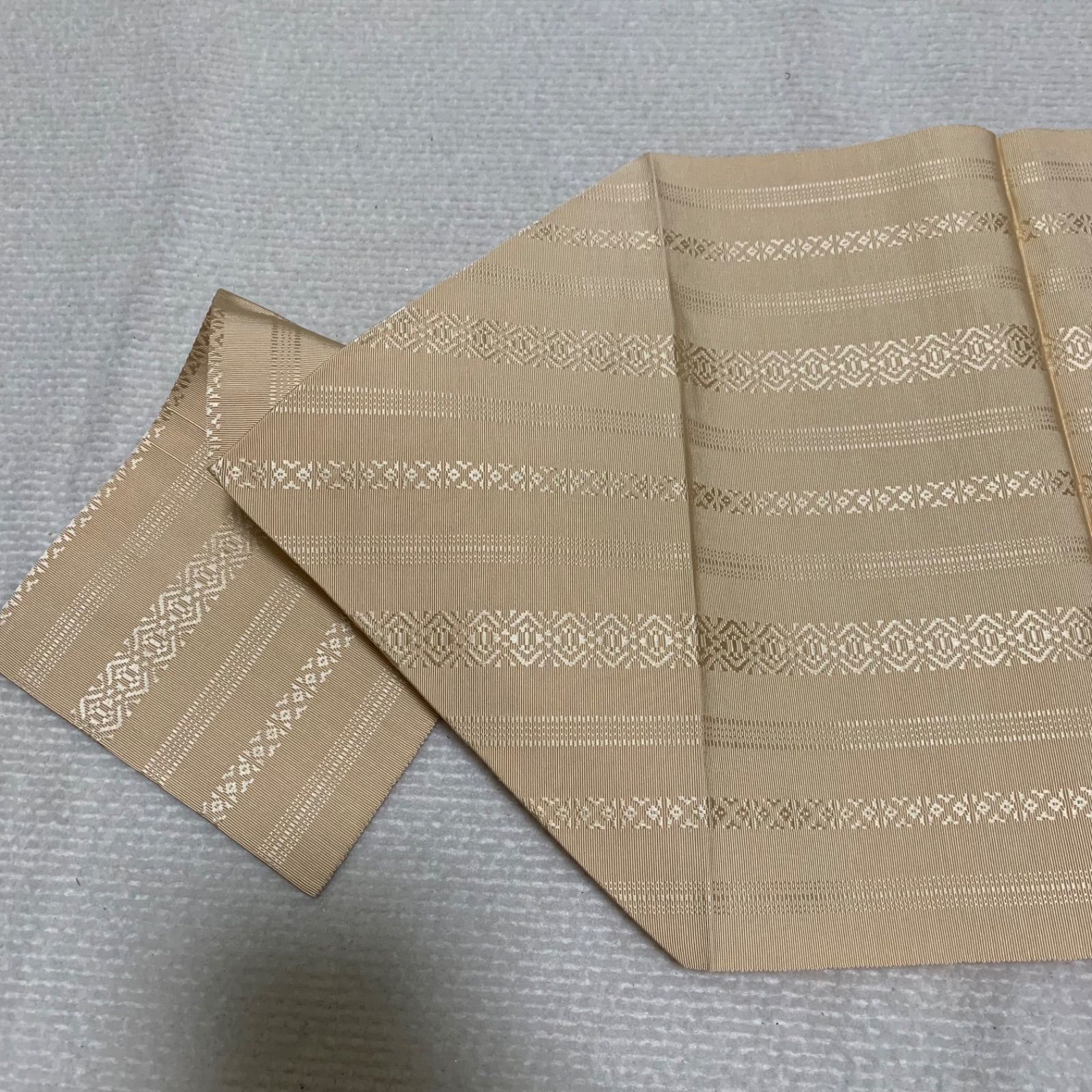 帯 名古屋帯 レディース ベージュ 織帯 全通 松葉仕立て 献上柄