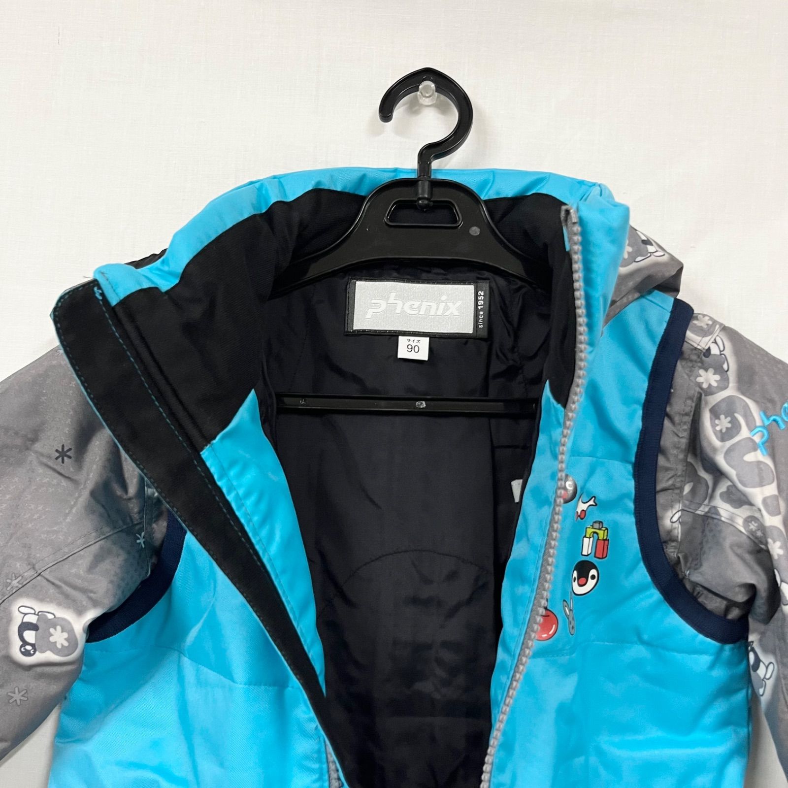 【中古品】 フェニックス 75~95cm 90サイズ ジュニア スキーウェア ピングー ロゴ キッズ 子ども スノーウェア つなぎタイプ