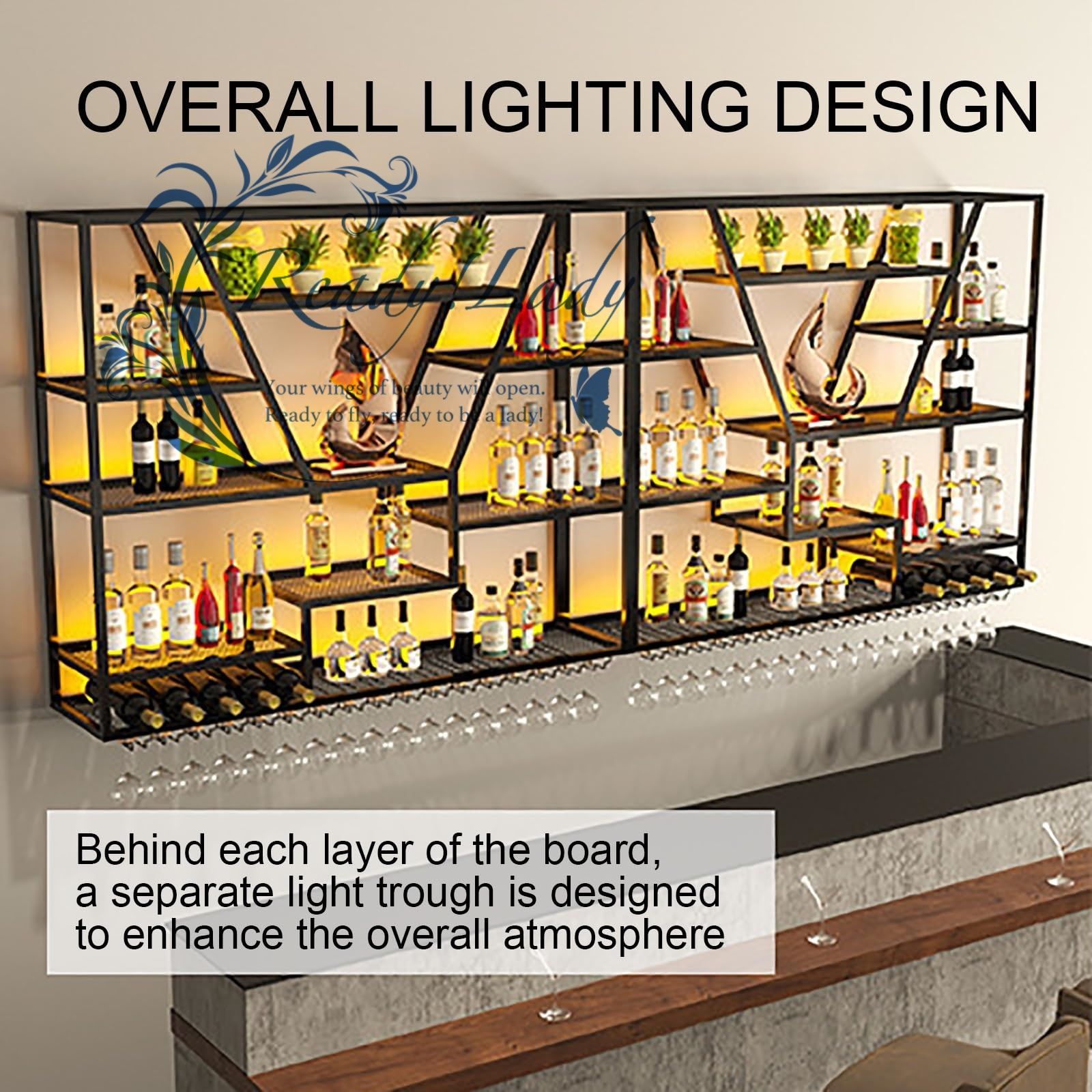 LED壁掛けワインラック——このスタイリッシュなワインラックにはLEDライトが内蔵されており、ワインコレクションをエレガントに表示できます。 LED ライトストリップは、暗闇の中でワインボトルを柔らかく暖かい光で照らし、ワインボトルに焦点を当てます。 LEDライト付きのこのワインボトルディスプレイは、ホームバーやダイニングエリアにリラックスした魅力的な雰囲気を作り出します