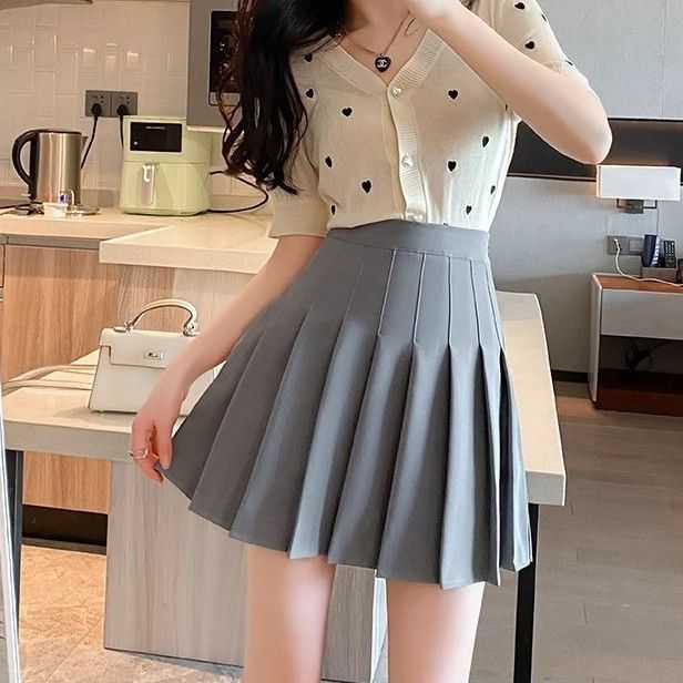 プリーツスカート ミニスカ ショート丈 韓国 ハイウエストブラック グレー 可愛い