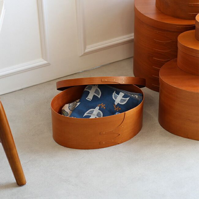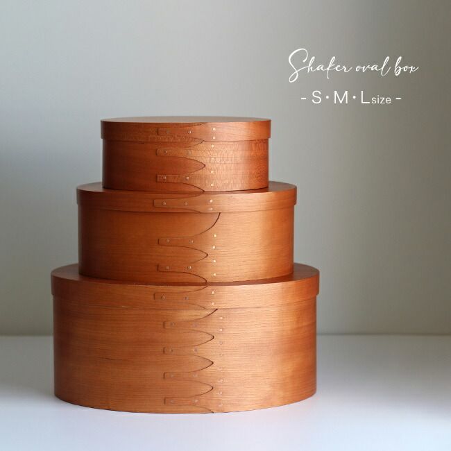 シェーカーの道具にヒントを得て作ったオーバルボックス。Sサイズ・Mサイズ・Lサイズのセットです。