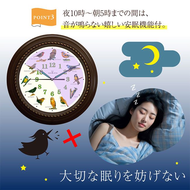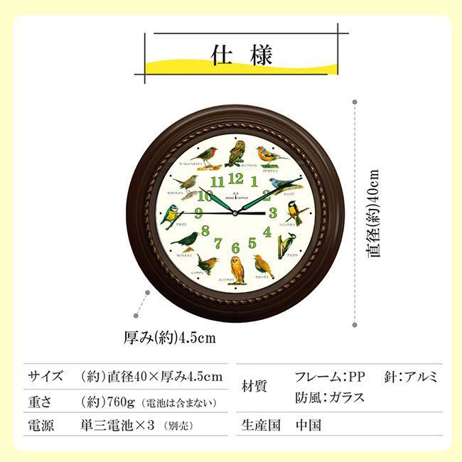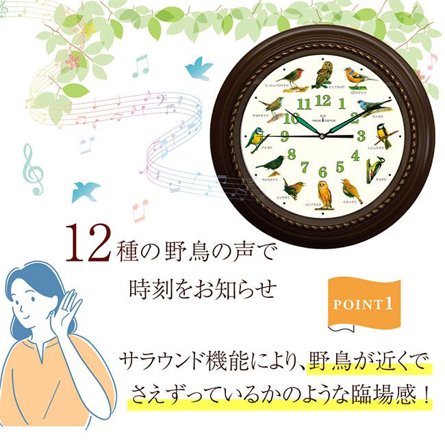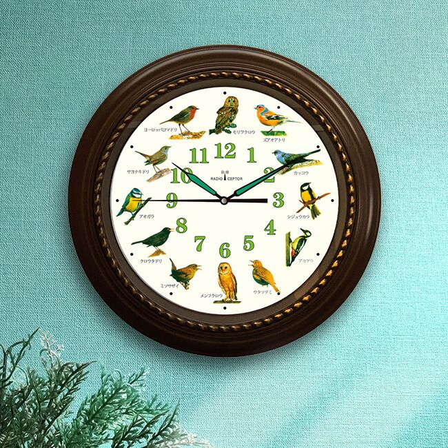 野鳥の心地よい鳴き声で時刻をお知らせしてくれる壁掛けの電波時計