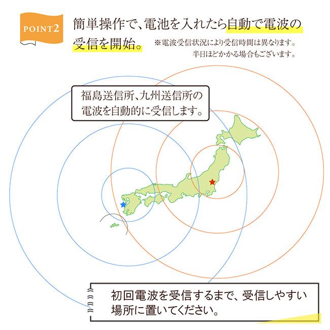 ●電池を入れたら自動で電波の受信を開始してくれる簡単操作!