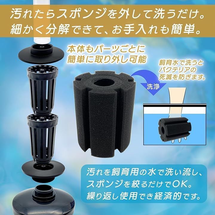 簡単設置と静音設計XY-2810バイオスポンジフィルターは、簡単設置で初心者にも最適です。
