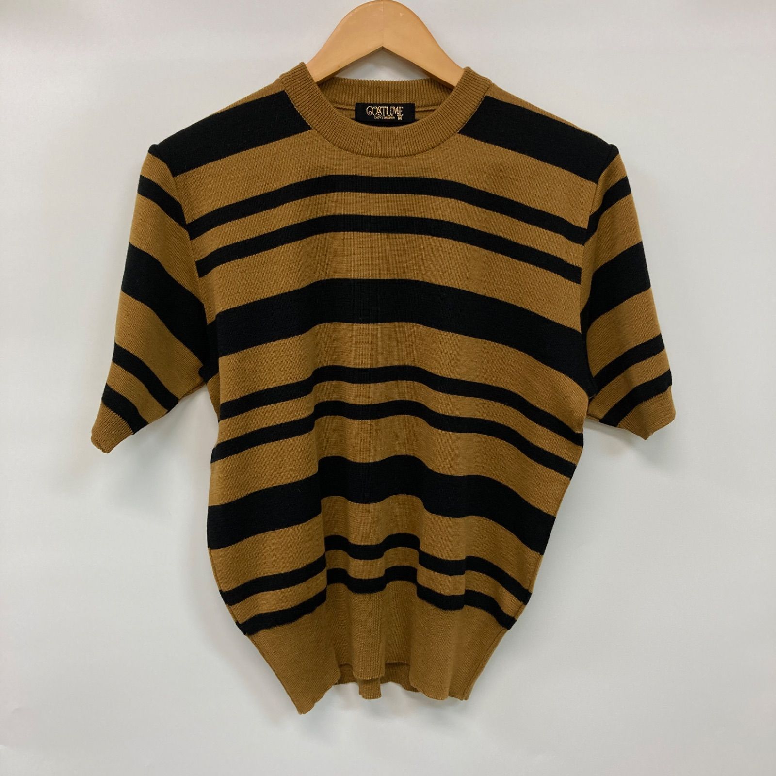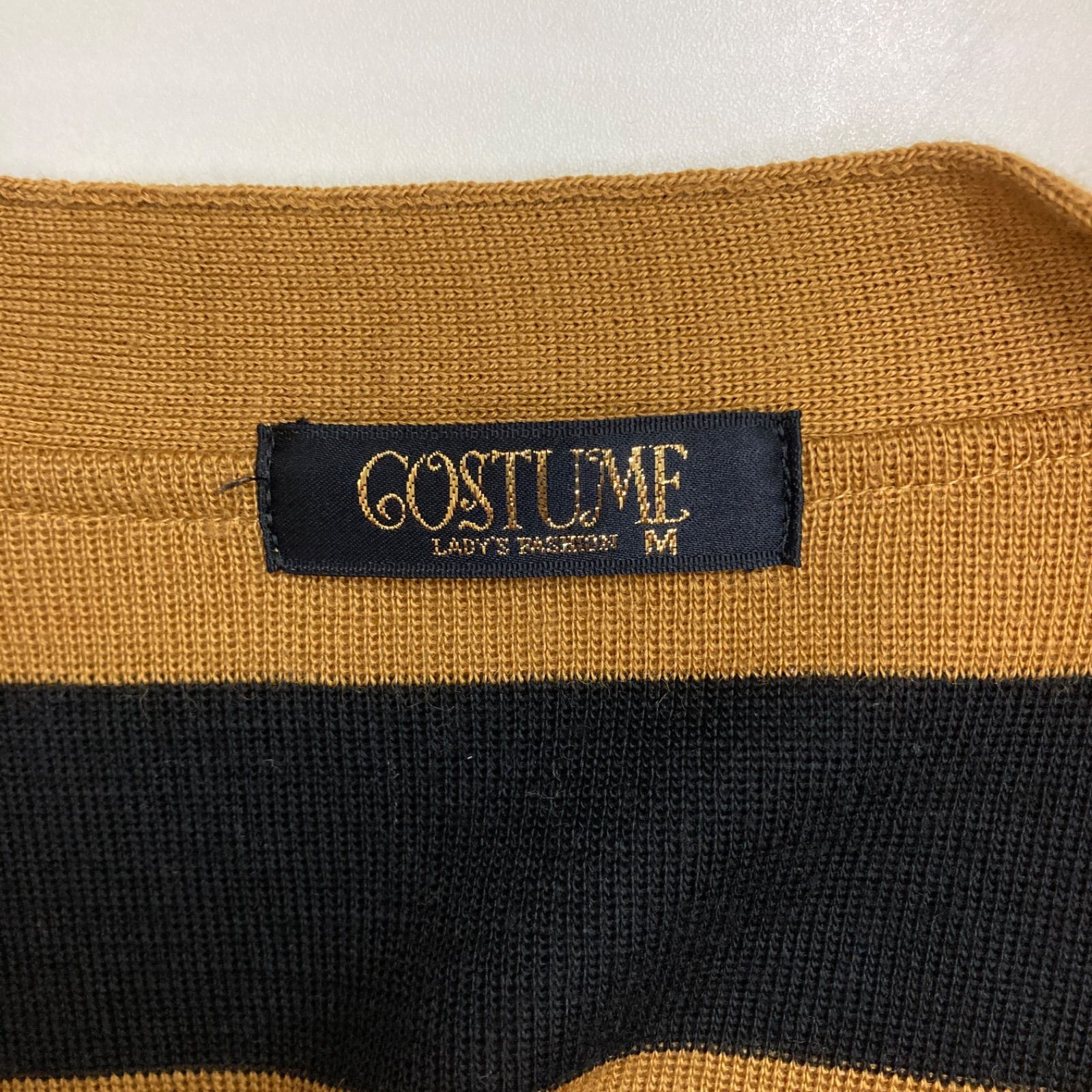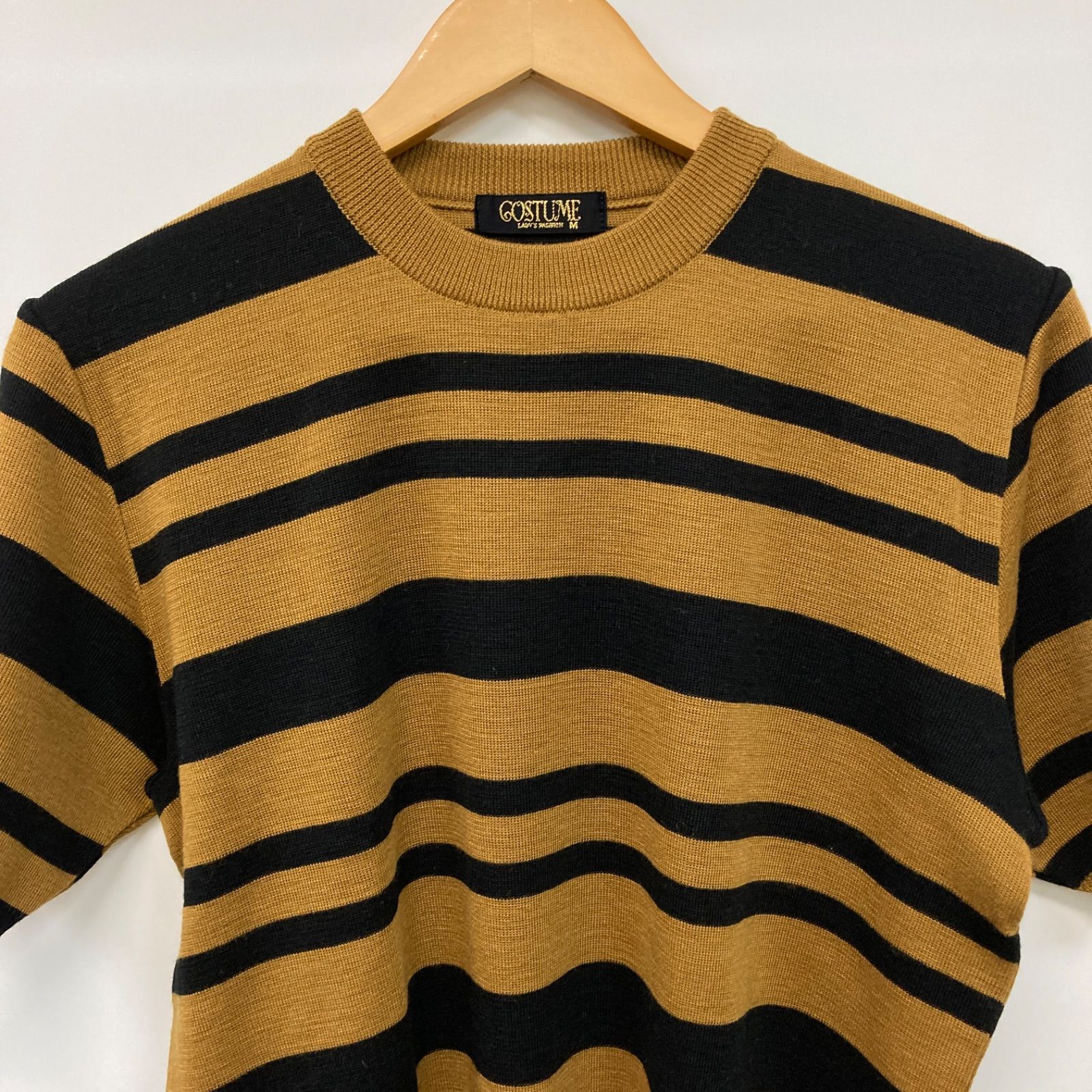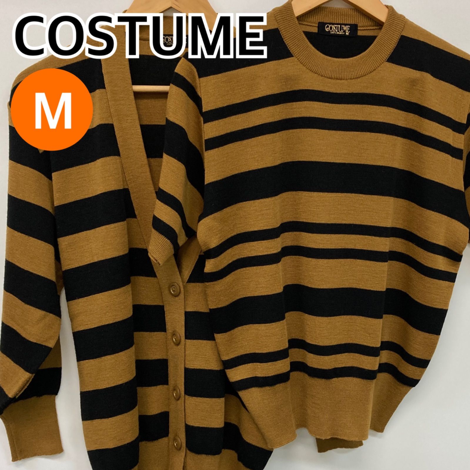 COSTUME コスチューム トップス 半袖 ニット カーディガン ボーダー セットアップ ブラウン ブラック 日本製 レディース Mサイズ 【CT2362】