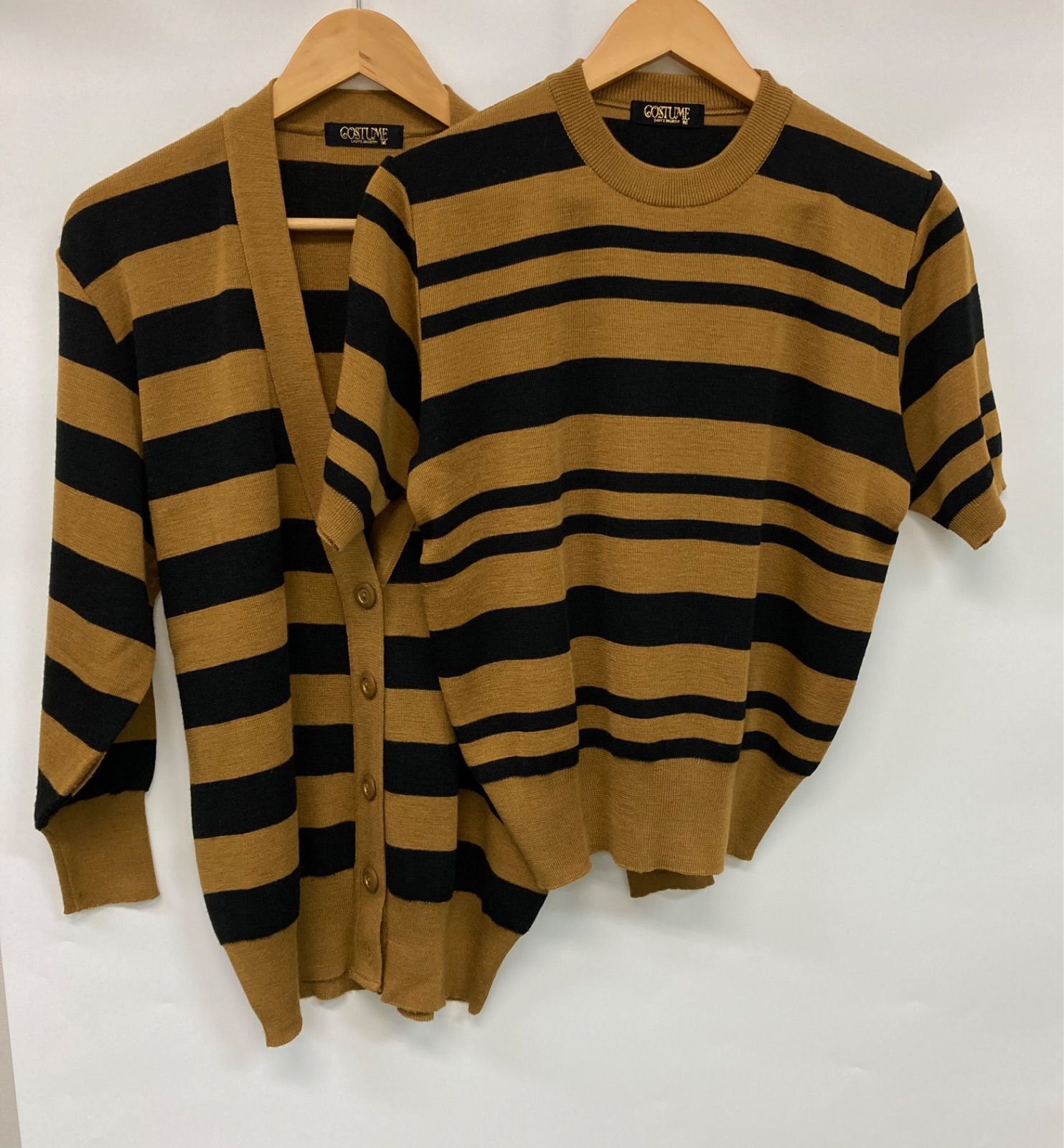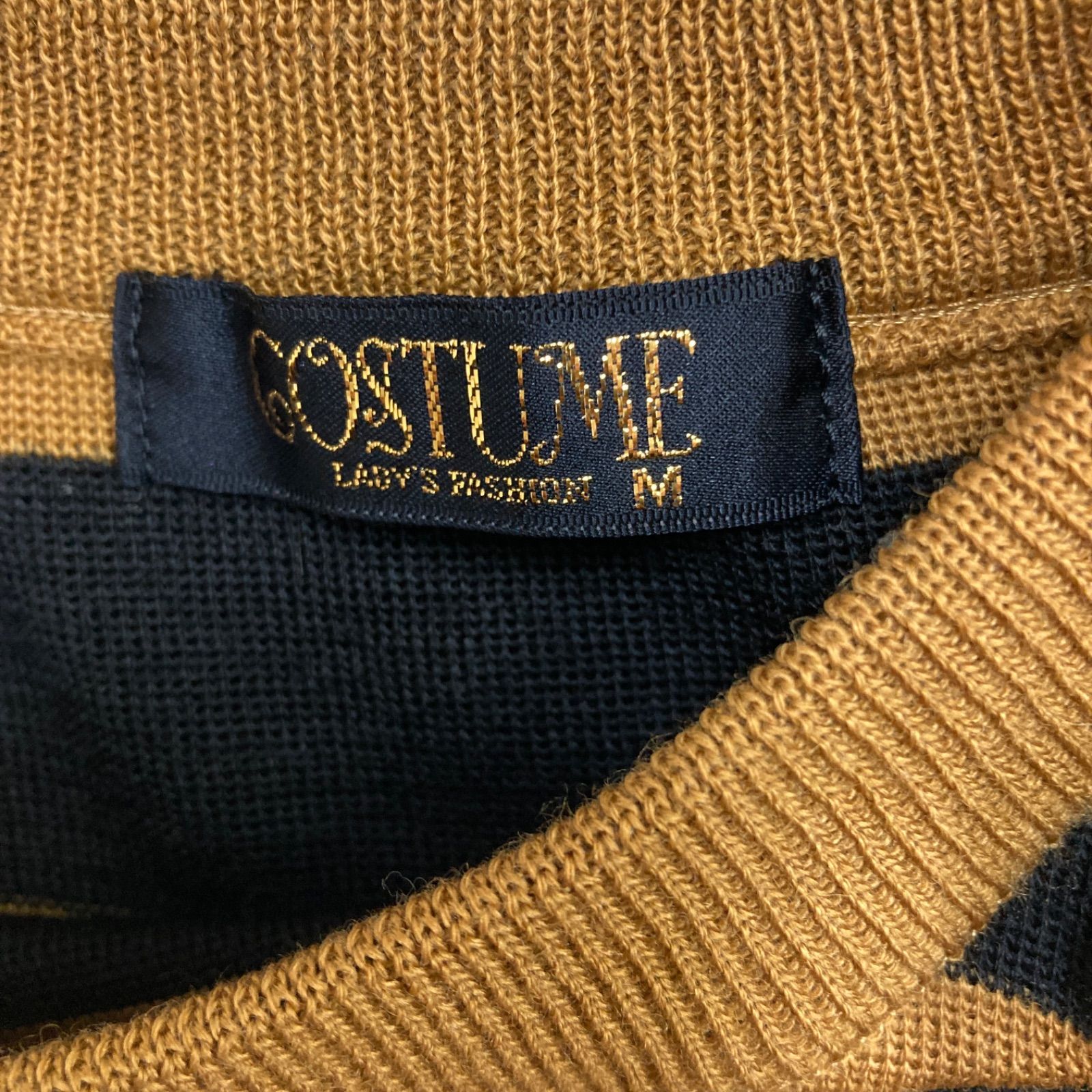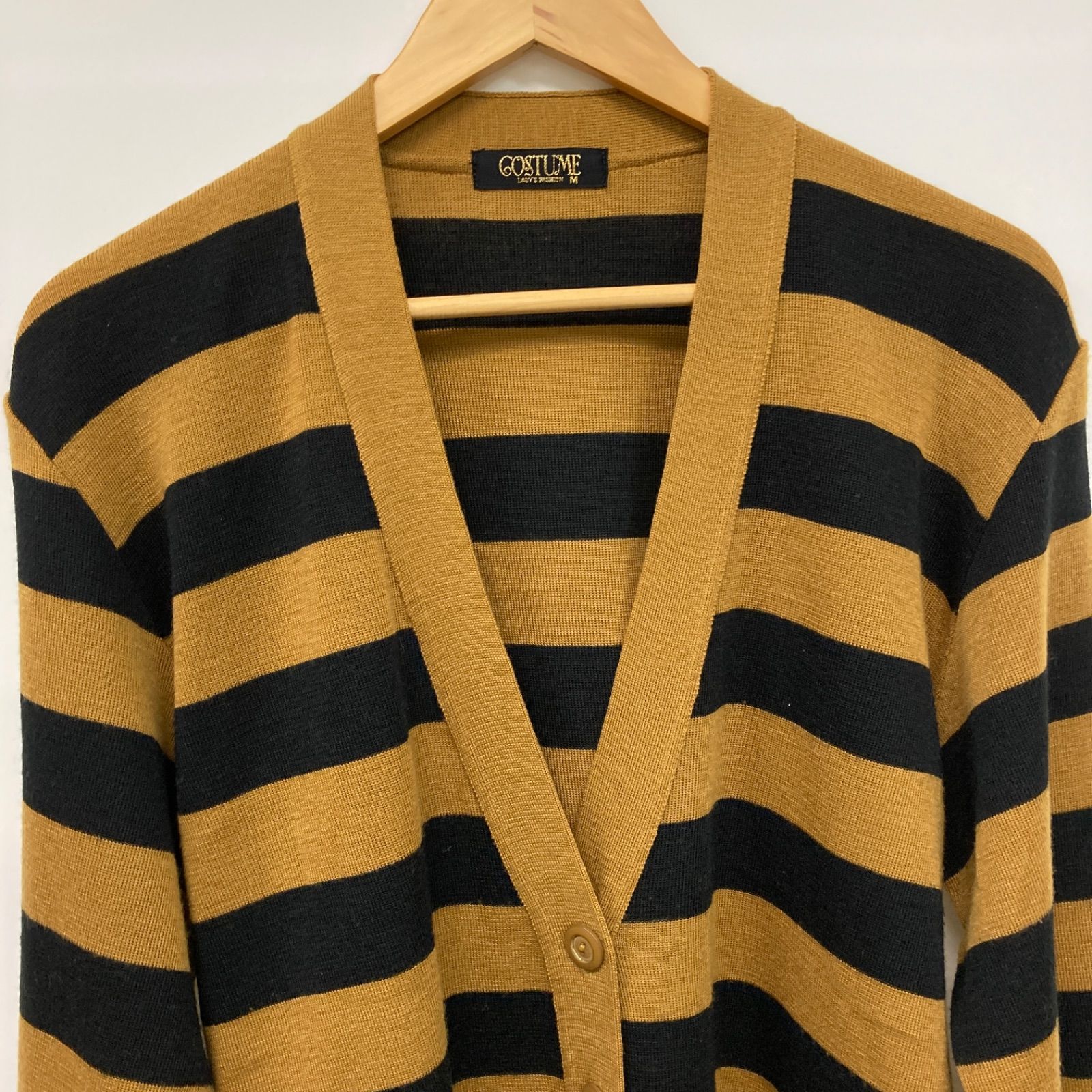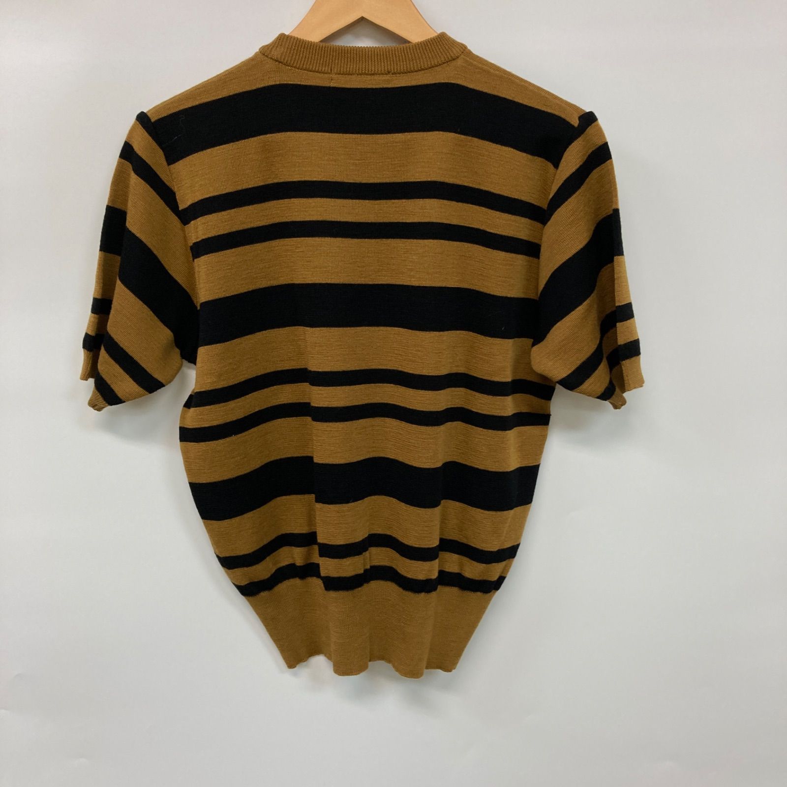COSTUME コスチューム トップス 半袖 ニット カーディガン ボーダー セットアップ ブラウン ブラック 日本製 レディース Mサイズ 【CT2362】