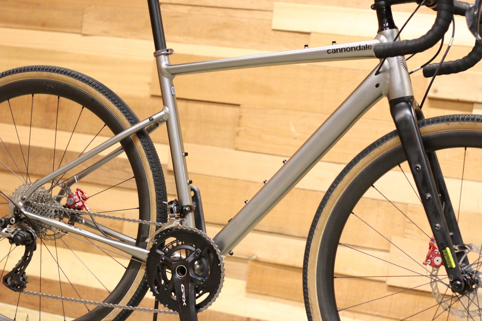 コンポーネントにはシマノのグラベルコンポのGRXをメインに機械式11速コンポーネントを装備。