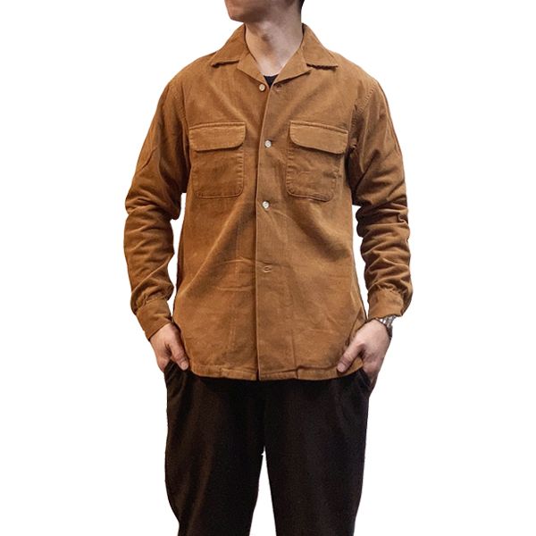 細畝コーデュロイ生地を採用したオープンカラーシャツ。