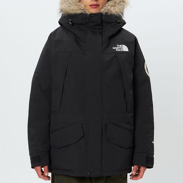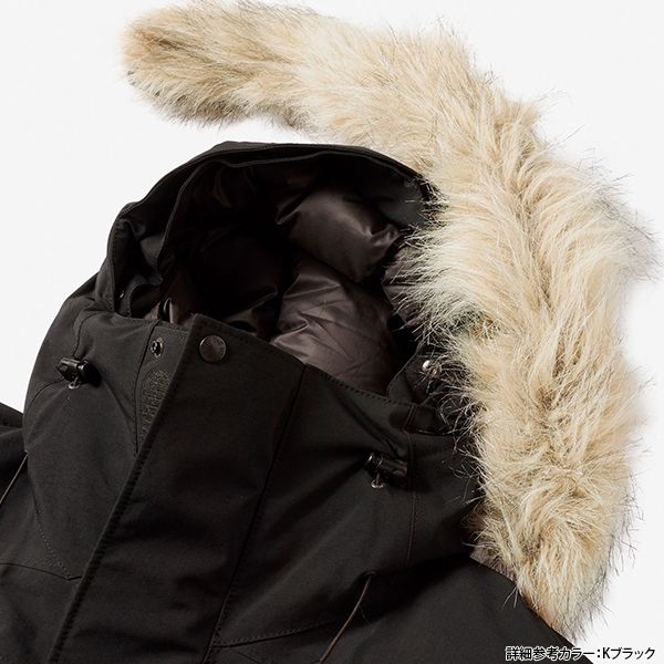 小物の収納に便利な5つのファスナーポケットを装備。フードファーは取り外しが可能。