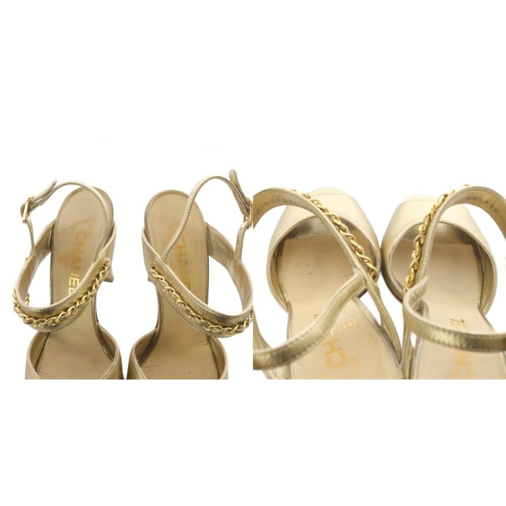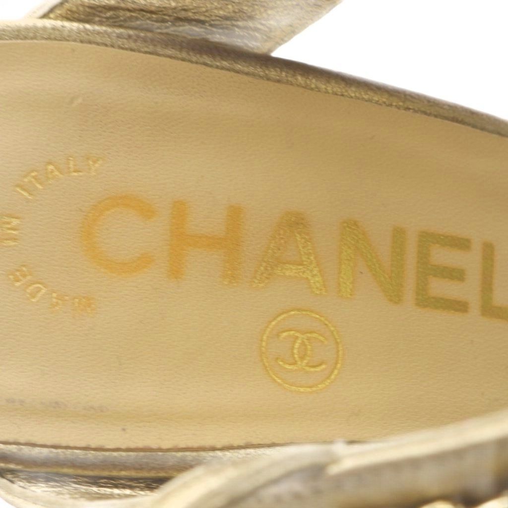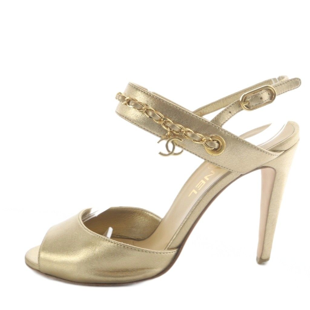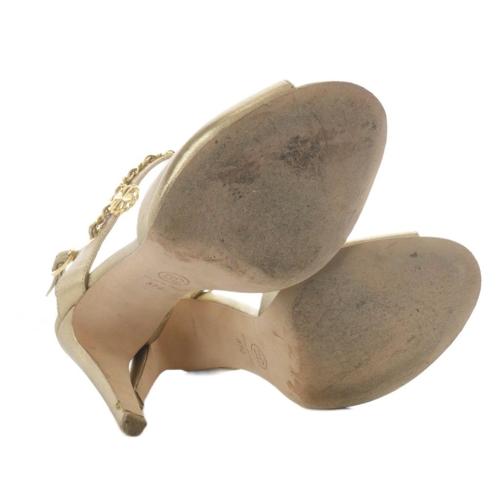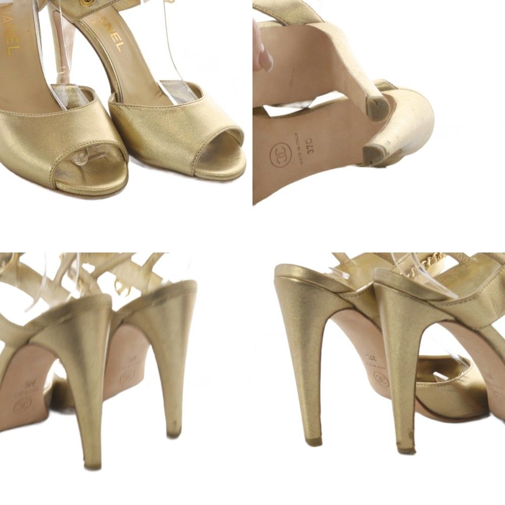 【商品名】シャネル CHANEL サンダル ハイヒール ココマーク チェーン ストラップ レザー 37C ゴールド色 /YO32