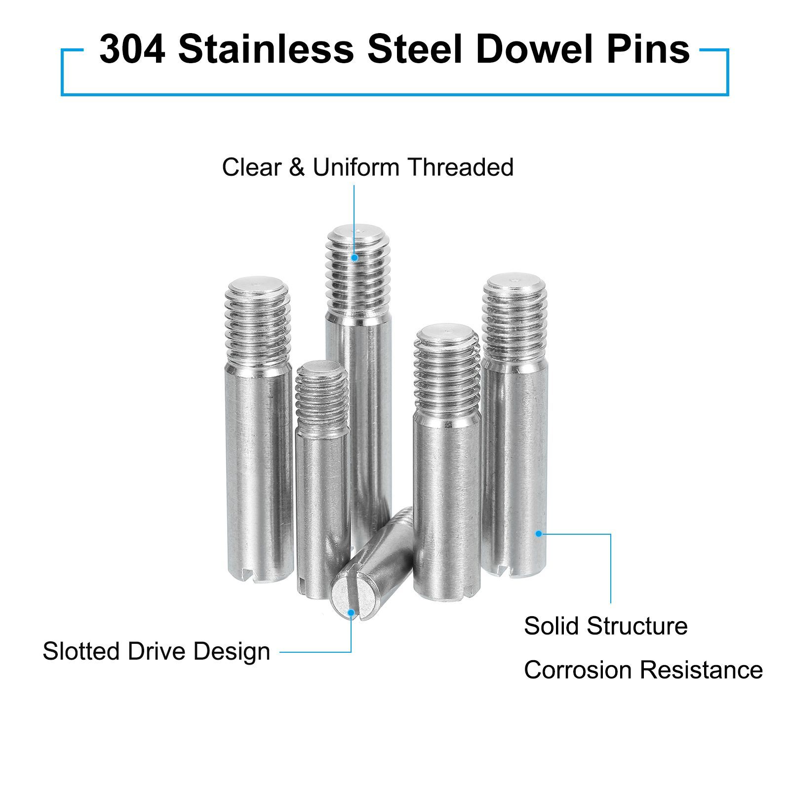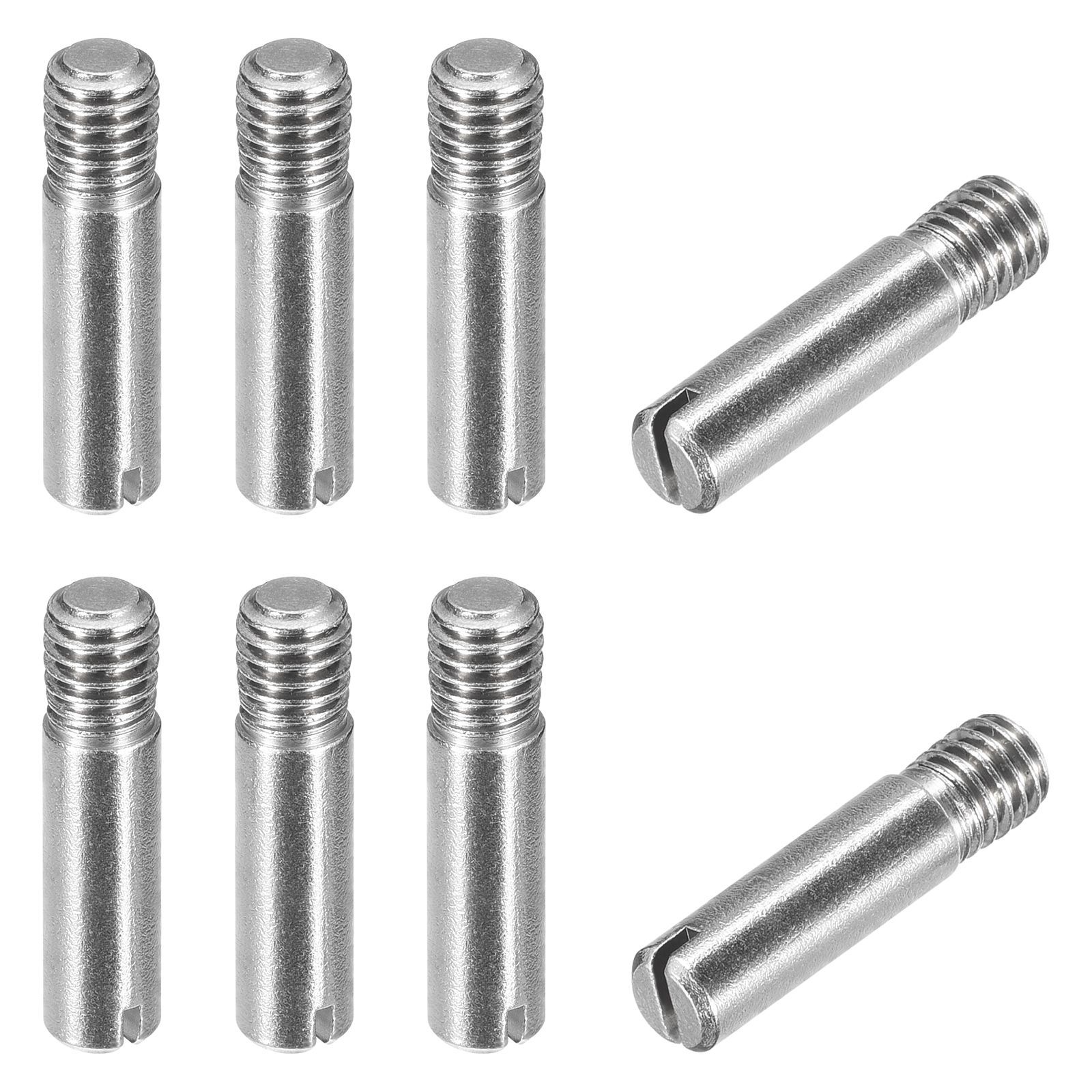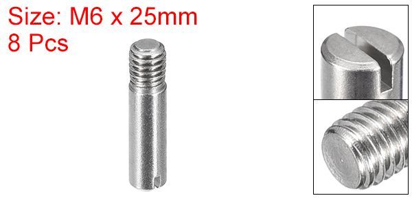 【仕様】製品名:ネジ式棚ダボ。サイズ:M6×25mm(スレッド径×総長)。スレッド長:7.2mm。スロット幅:1mm。パッケージ内容:ダボピン ×8個。