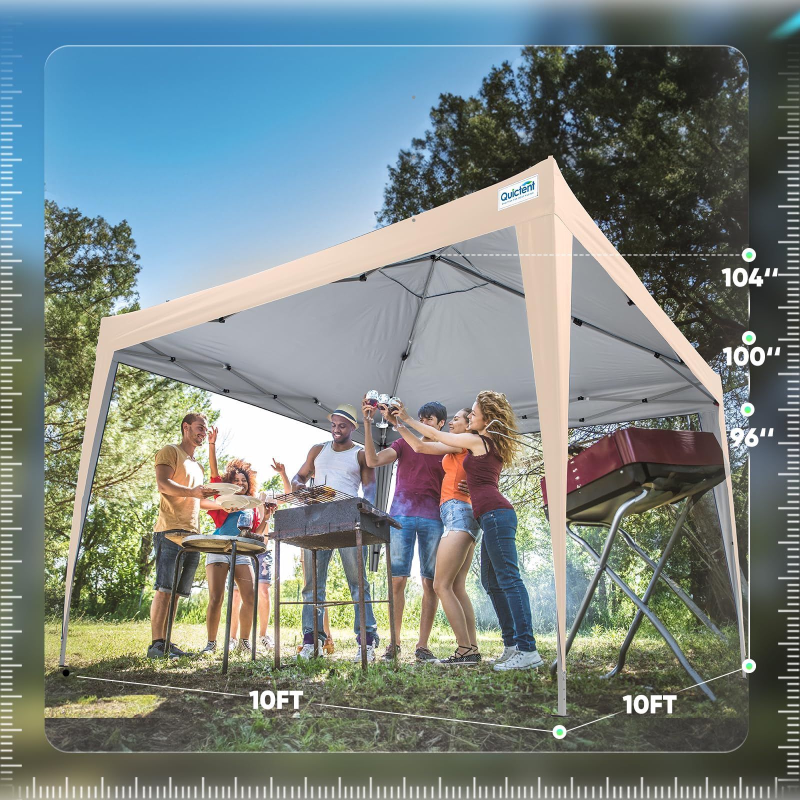 Quictent ワンタッチ タープテント3段階調節 UVカット 耐水 スチール キャンプ アウトドア 耐水 テント キャンプ用品 ワンタッチテント タープ収納ケース (ベージュ 2.5*2.5M)