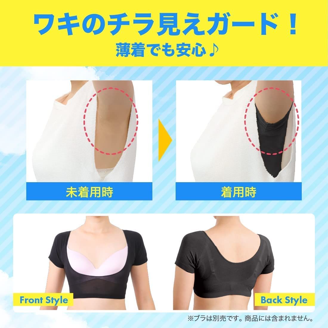 【 ワキのチラ見えガード! 】ストレッチ素材で腕にフィットしているので、横からのチラ見えをガード。薄着でも安心です。前後のカットが深めでトップスのデザインを選ばず着られます。
