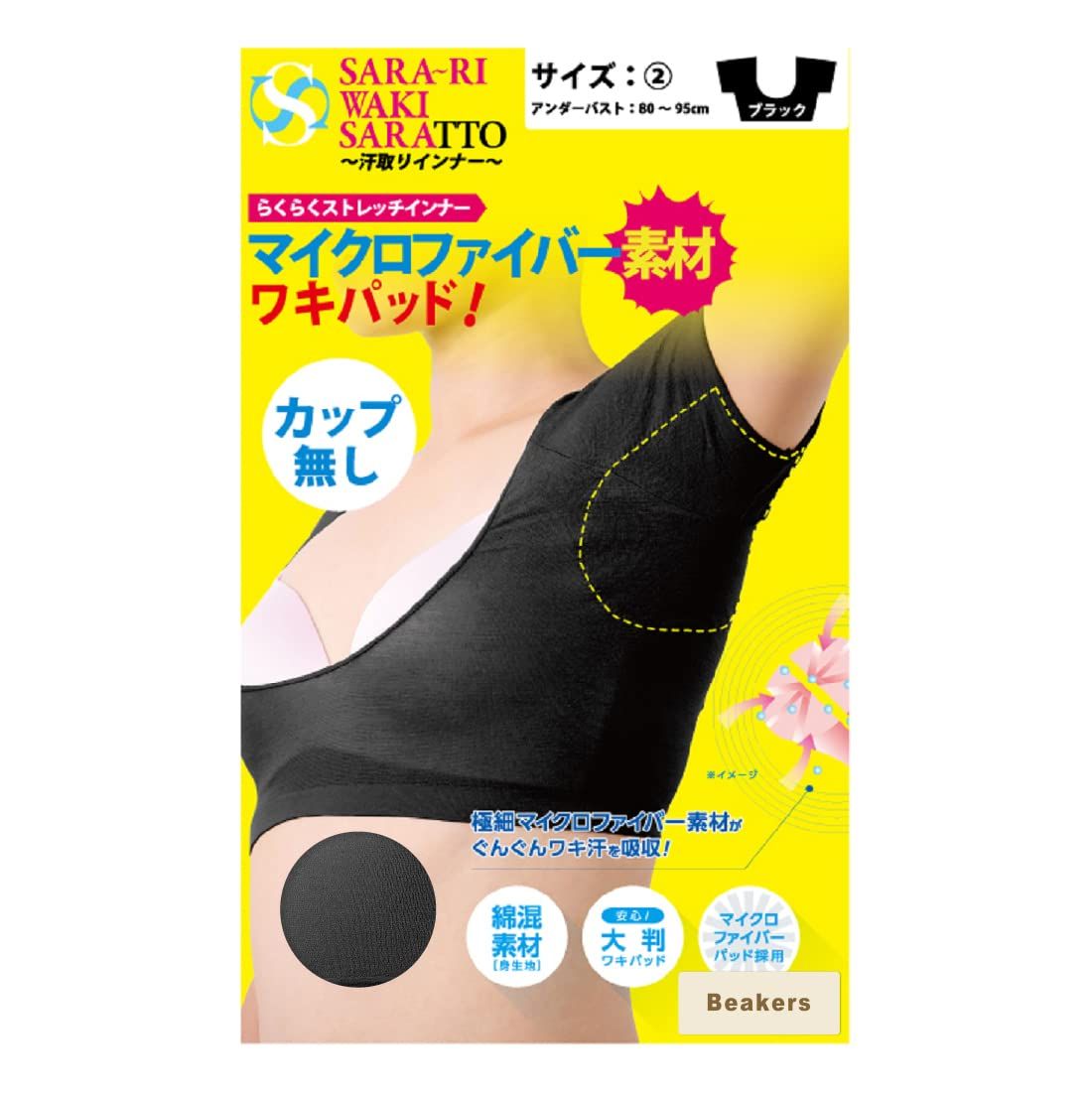 汗取りインナー サラーリ ワキサラット 黒 サイズ2 (汗とりパット 大判 ストレッチ ブラック 夏 レディース シェモア)【 ビーカーズ 】