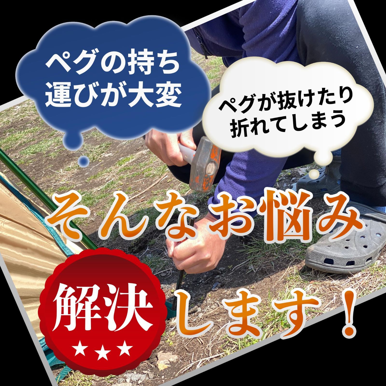 【テントに適した形状】当テントペグは逆刺を採用することで、使用中に抜けにくい設計です。また、ピンペグやネイルペグなどの丸形ペグと違い長方形断面にすることで、土の中で回転しにくく脱落することもありません。熟練のキャンパーだけでなく、キャンプ初心者の方でも使いやすい設計です。