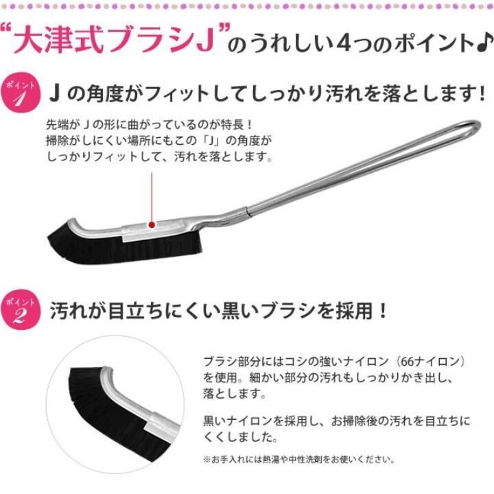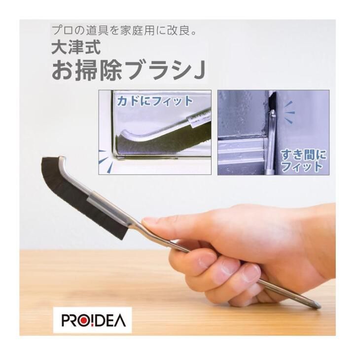 商品概要 PROIDEA 大津式 お掃除ブラシ J ― 隙間・角に届く「Jの字」型の掃除ブラシです。歯ブラシでは届きにくい箇所を、ステンレス持ち手とナイロン毛でしっかり掃除できます。