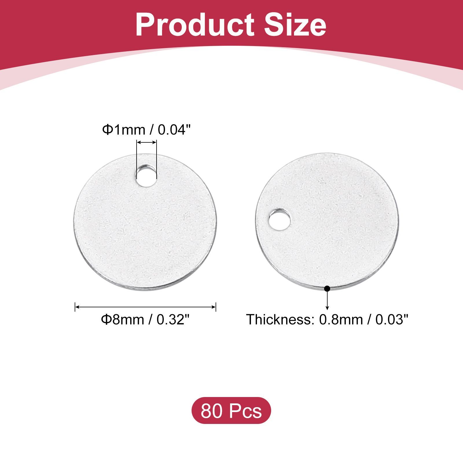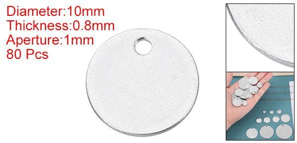 [パッケージ内容]: 直径約10mm/0.39"、厚さ0.8mm/0.03"、穴径約1mm/0.04"の円形ネームタグ80個を含まれております。十分な数量は異なるクラフト製作ニーズに対応できます。