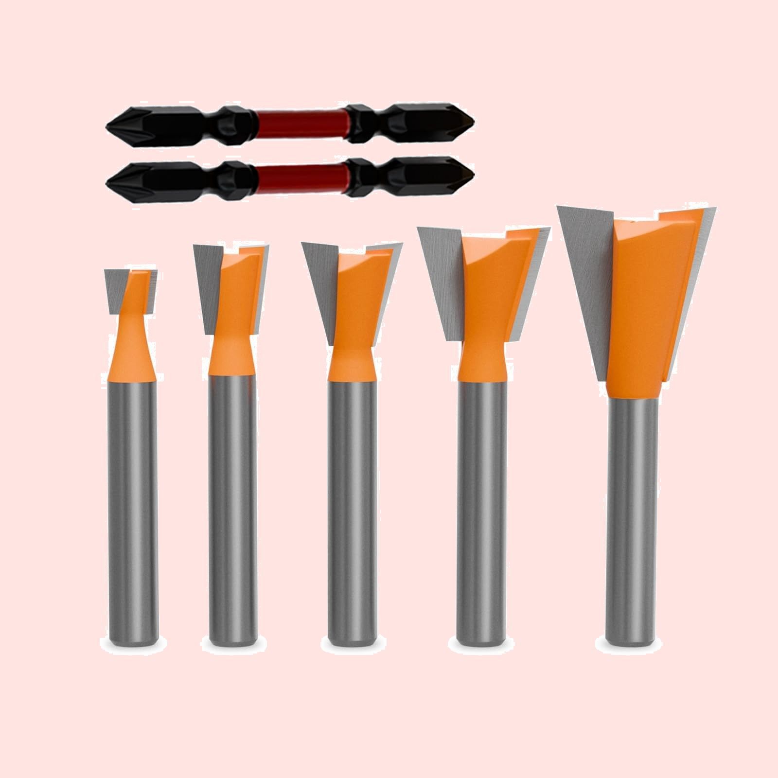 Kuzuru 5本セット超硬刃アリ錐ルータービット トリマービット6mm シャンク径ルーター・トリマービット 切削工具 戸板彫刻 木工用ほぞカッター アリ溝ビット