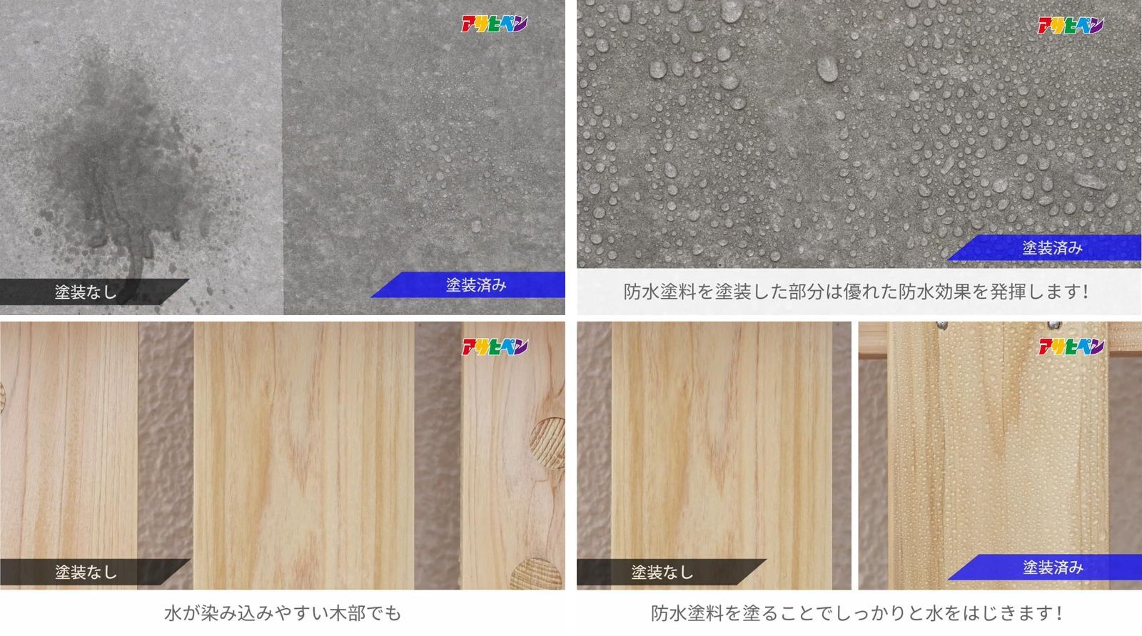 すぐれた防水性を発揮し、塗った面 の汚れも防止します。