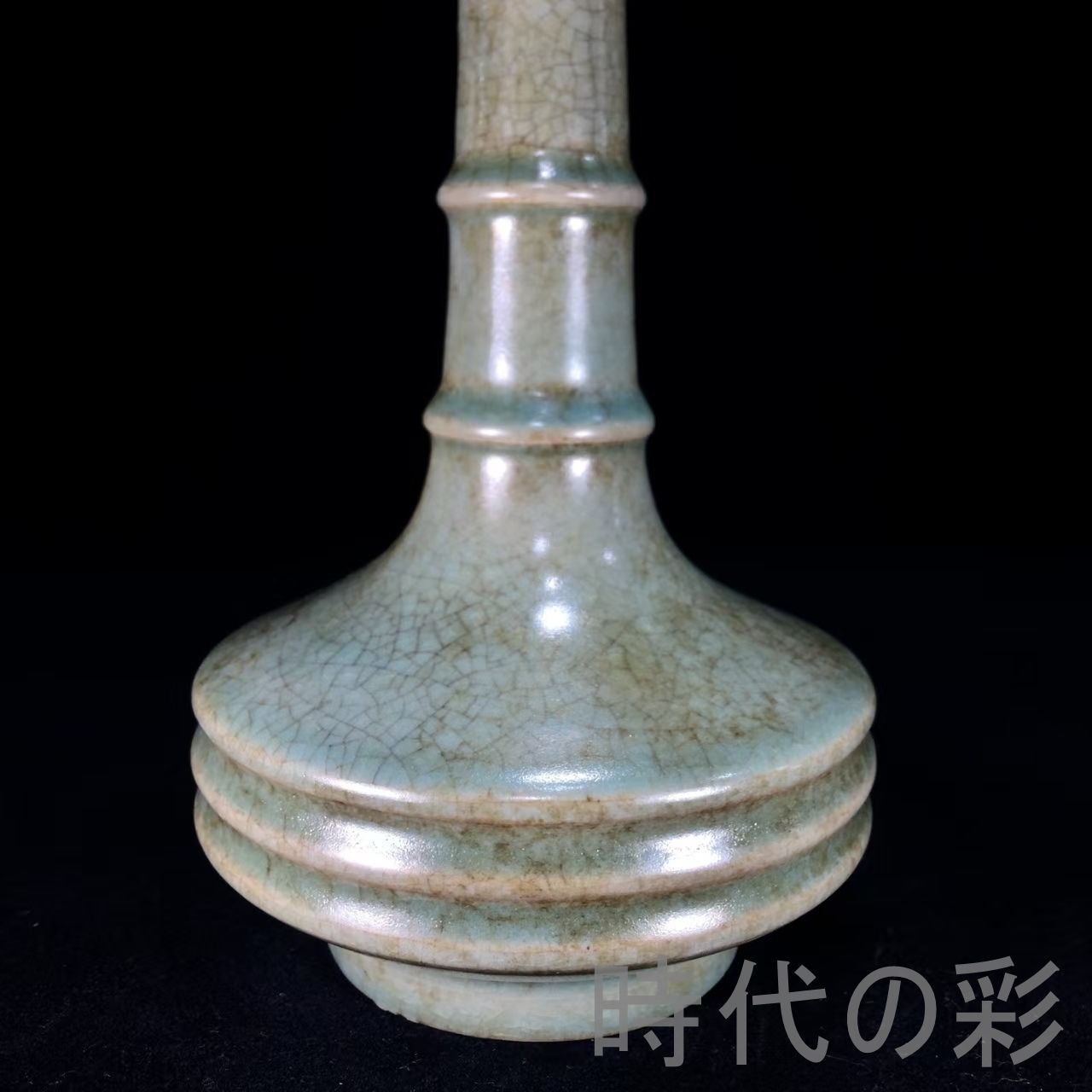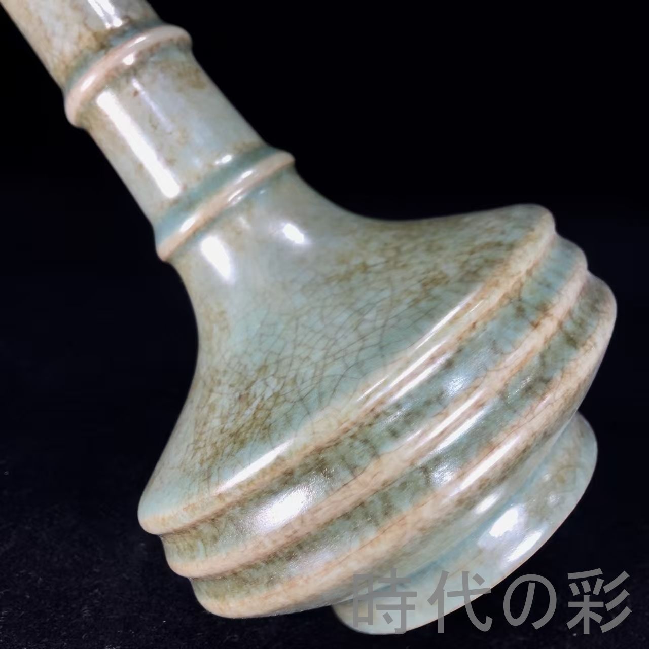 伝世包漿の美しい宋代汝窯の節節高瓶。釉薬の柔らかさと高脚形状が特徴で、飾瓶・鑑賞用として最適な一品。