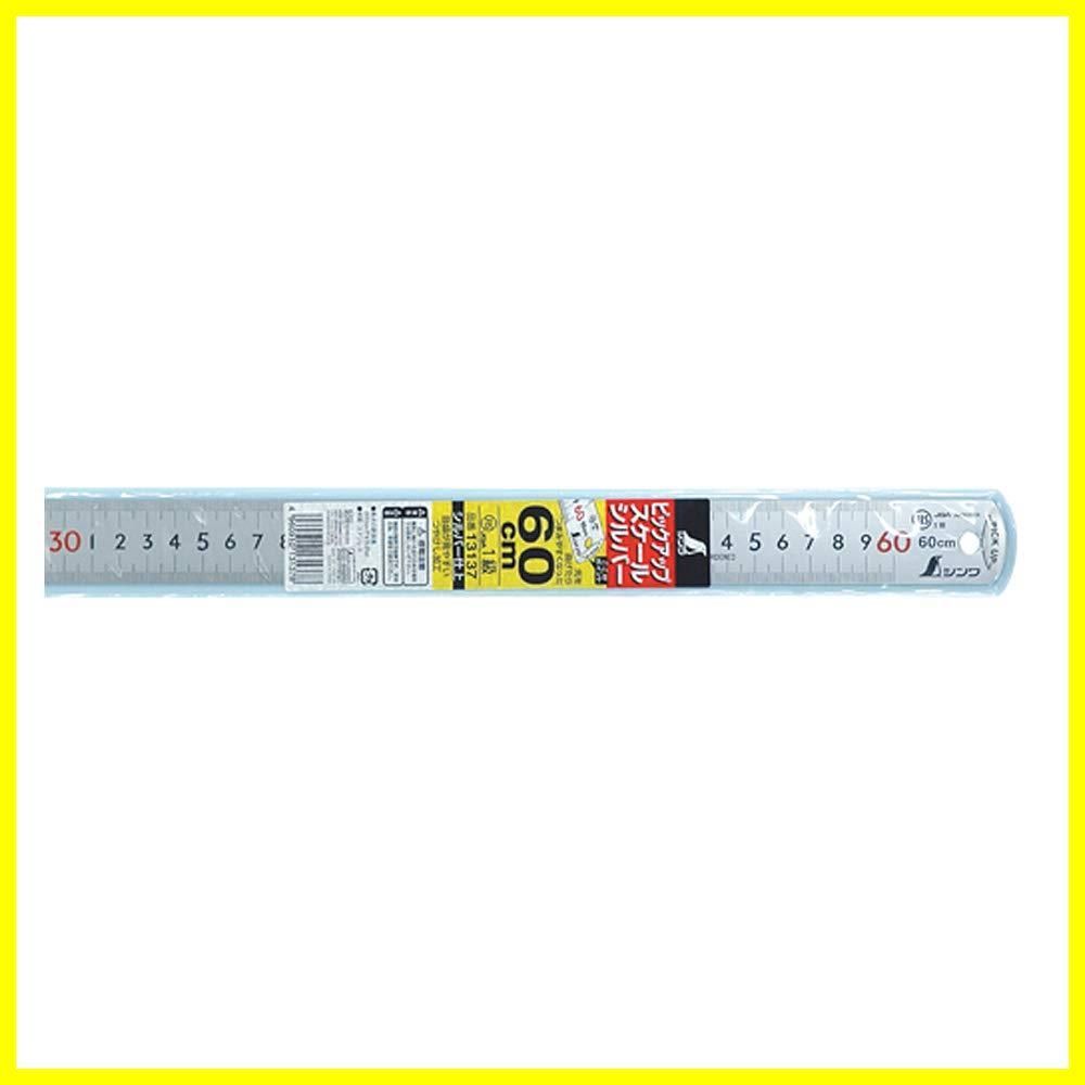 シンワ測定Shinwa Sokutei) ピックアップ スケール シルバー cm表示 上下段 1mmピッチ 60cm JIS1級 赤数字入 13137