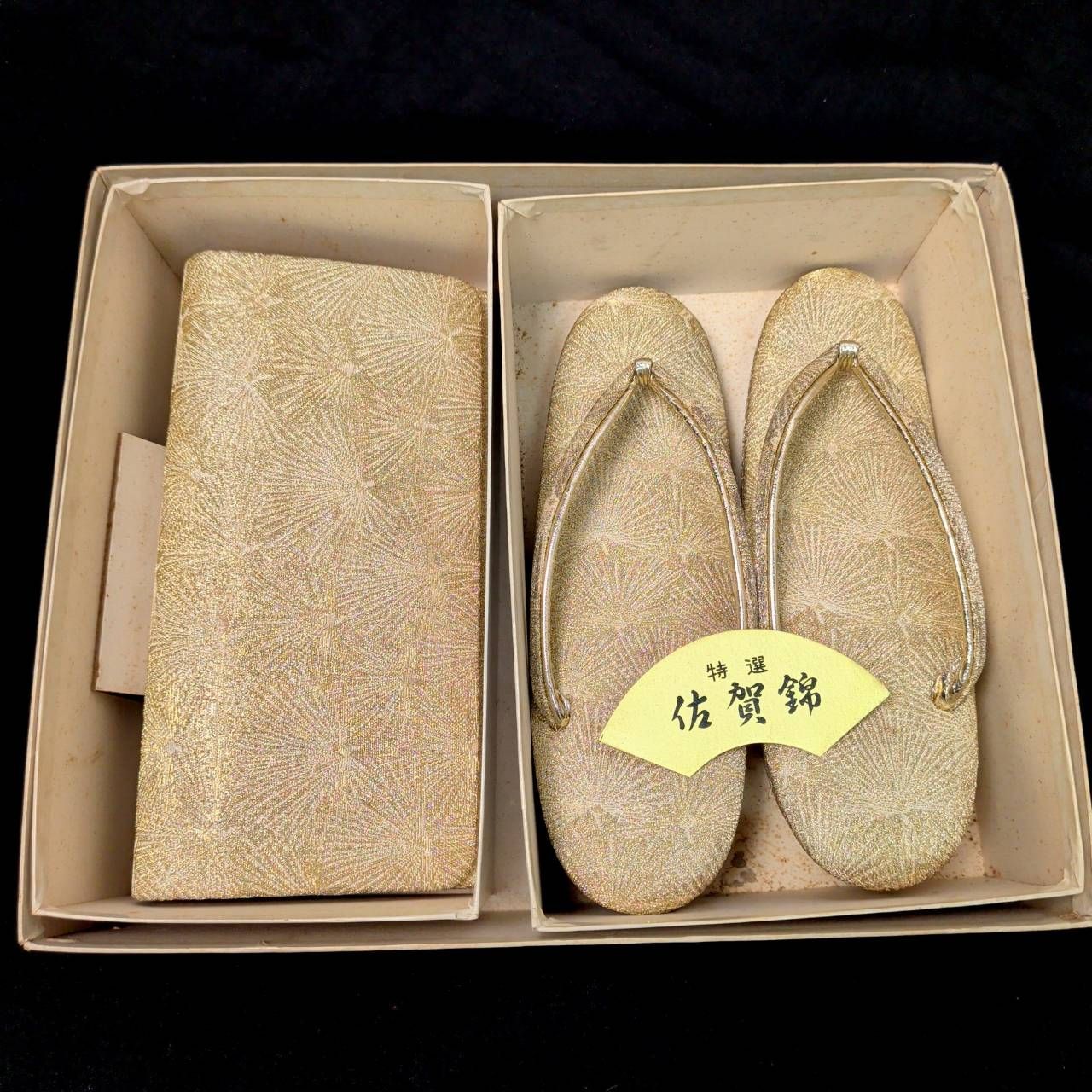 【商品】礼装用 バック 草履 金色 佐賀錦 23㎝