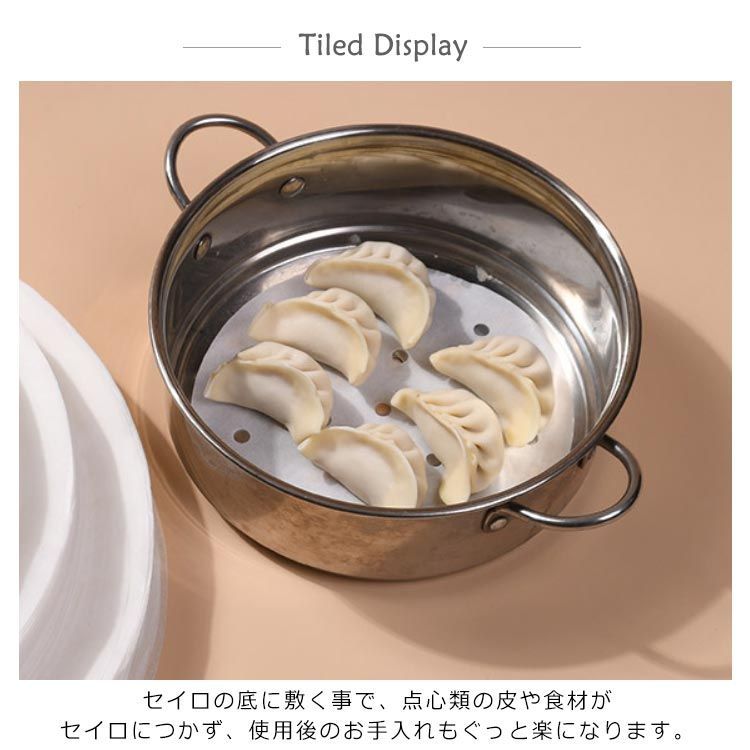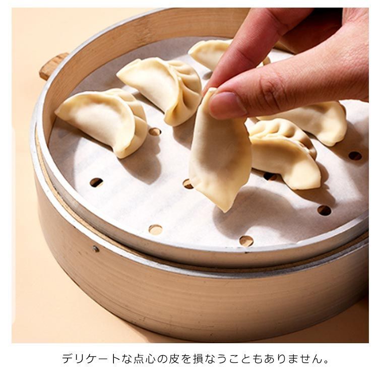 セイロの底に敷く事で、点心類の皮や食材がセイロにつかず、使用後のお手入れもぐっと楽になります。