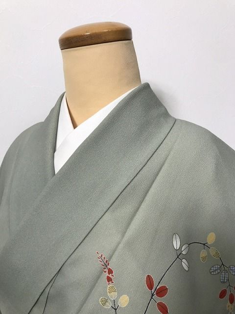 商品説明:細かなシボ感の青磁色地に萩模様の染め成し