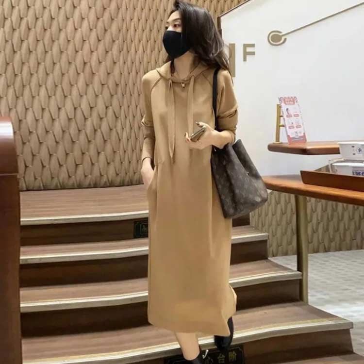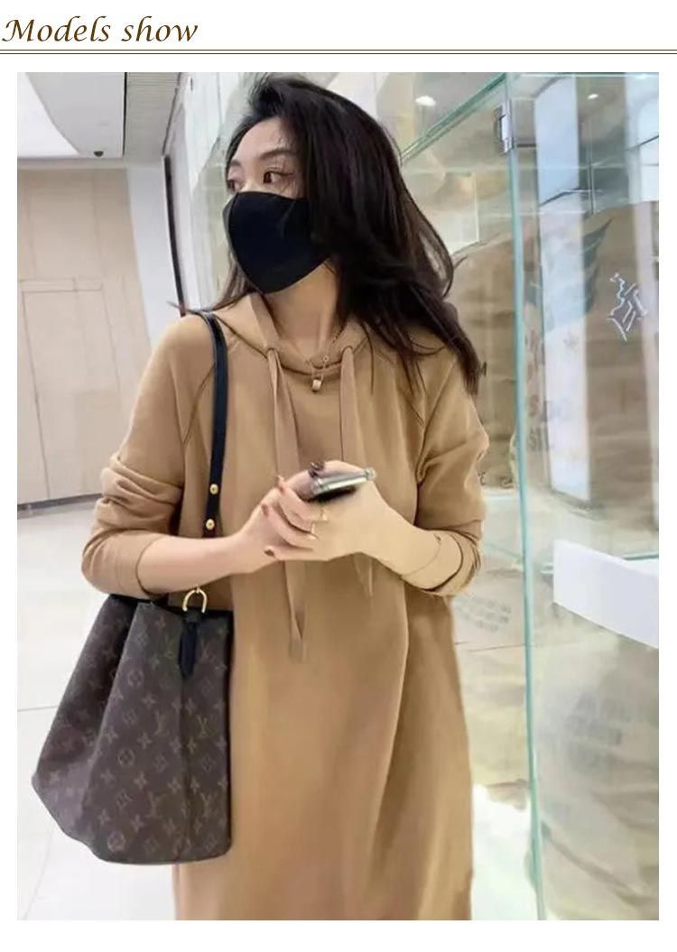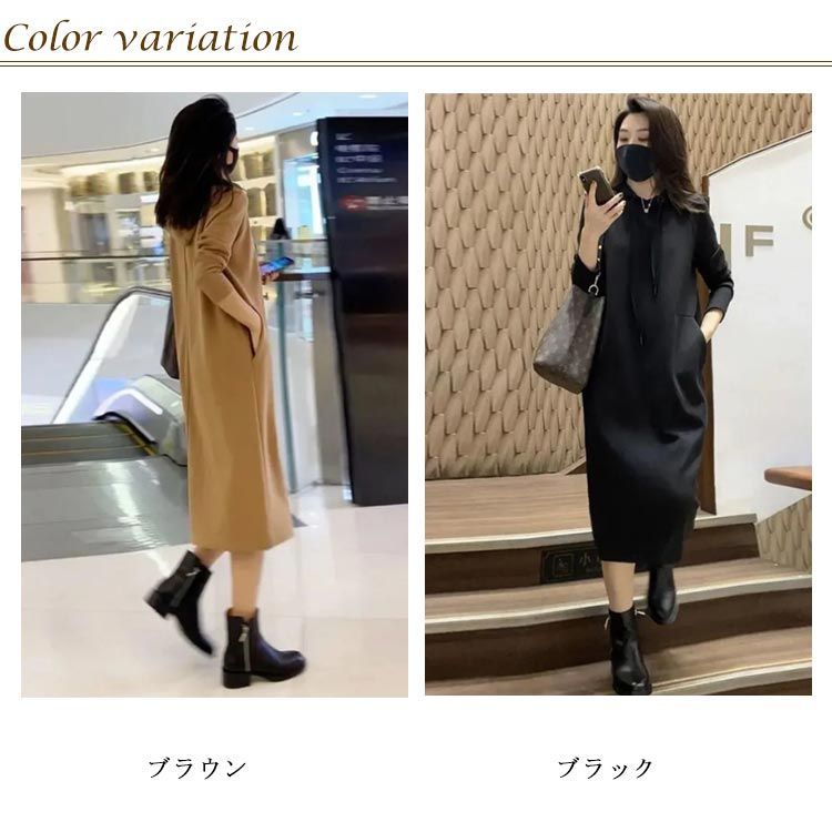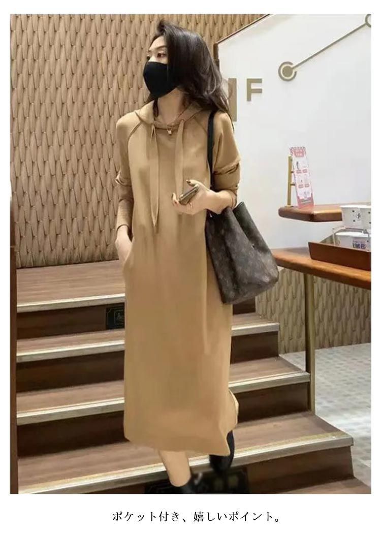 秋冬にぴったりのフード付きパーカーワンピース。
