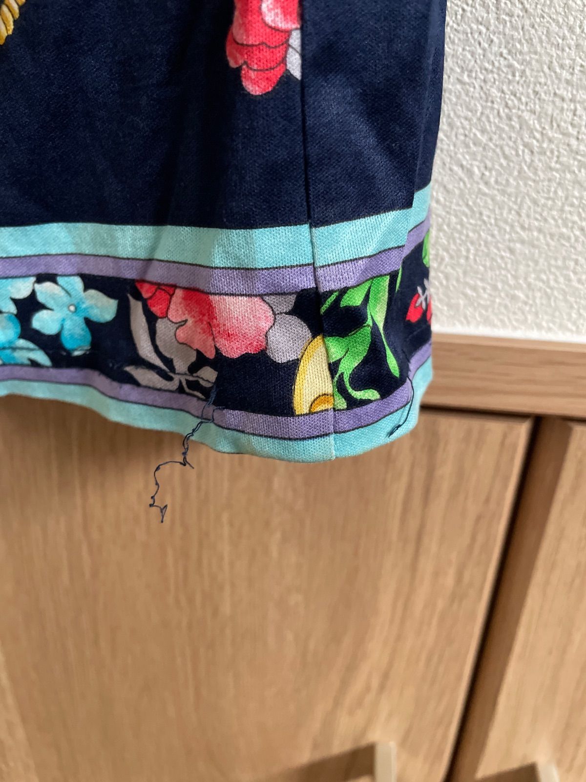 右下横側にほつれがあります。