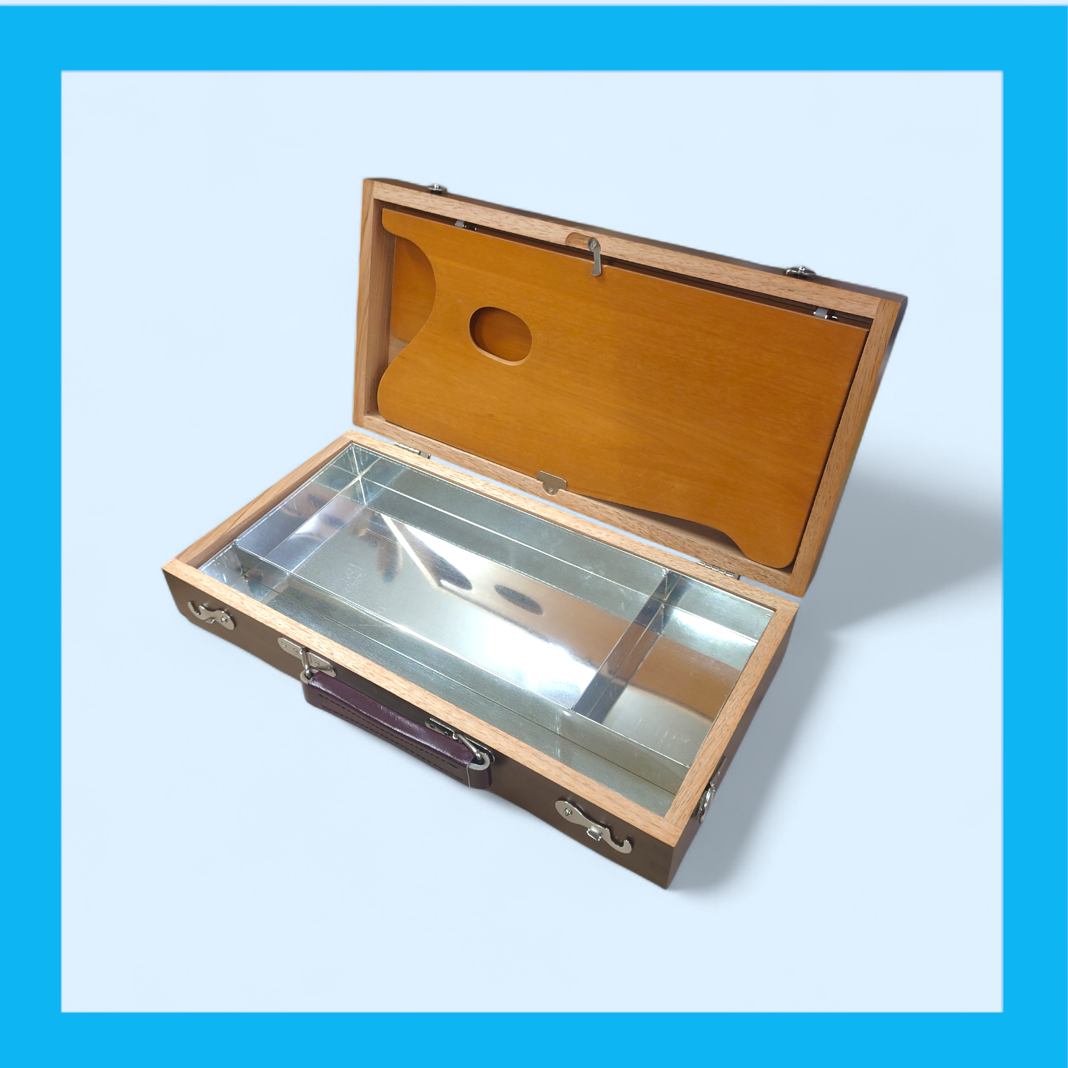セット内容:木箱、ブリキ仕切り、木製パレット(大半長型角丸/二つ折洋材単板)