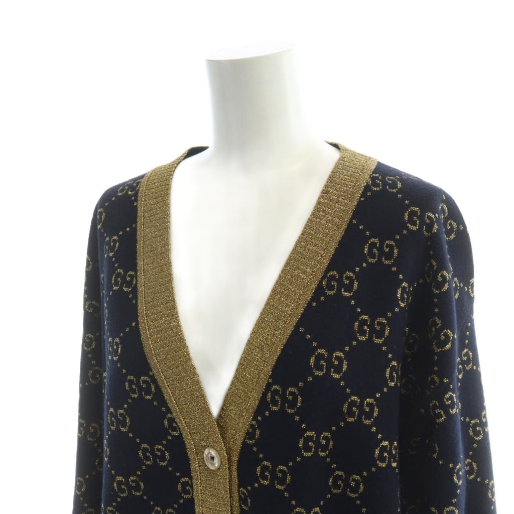 【商品名】グッチ GUCCI GG コットン ラメ ファブリック ニット カーディガン 長袖 Vネック シングル XS 紺 ネイビー ゴールドカラー 金色 ■GY40 /MQ