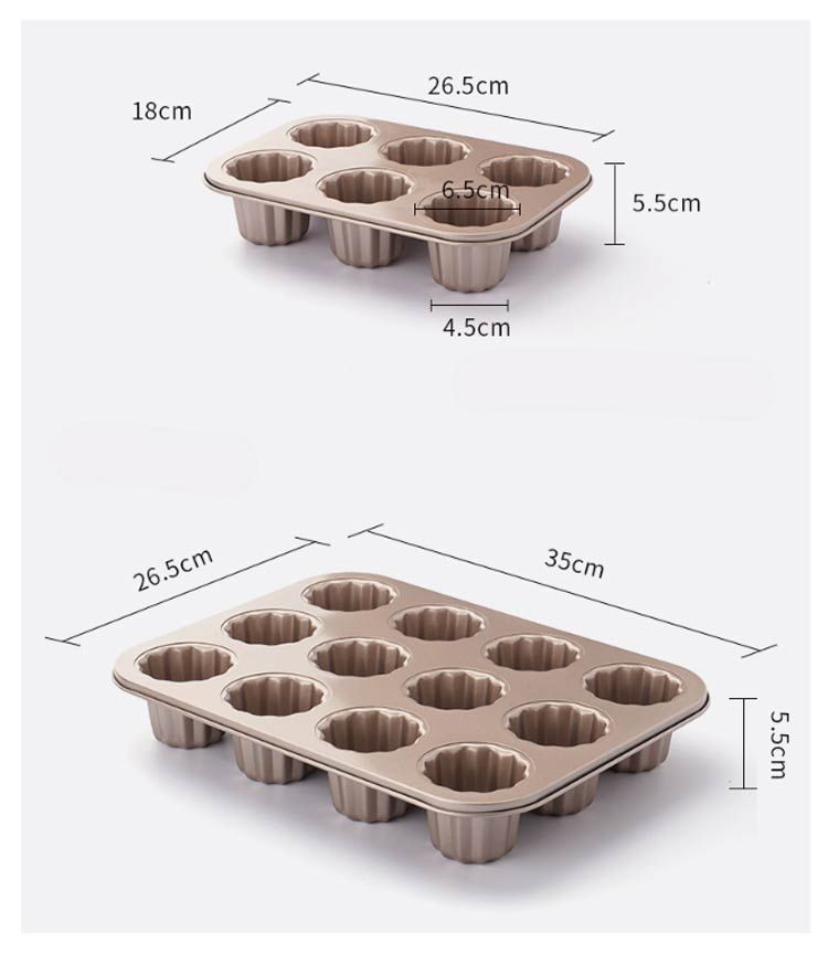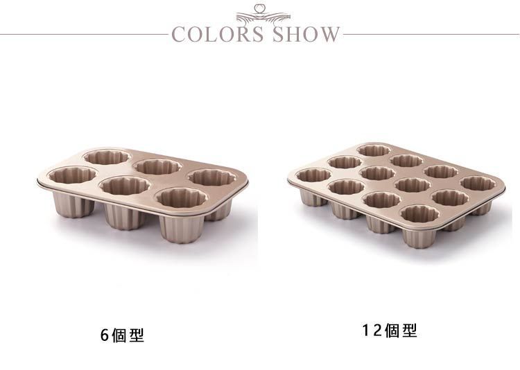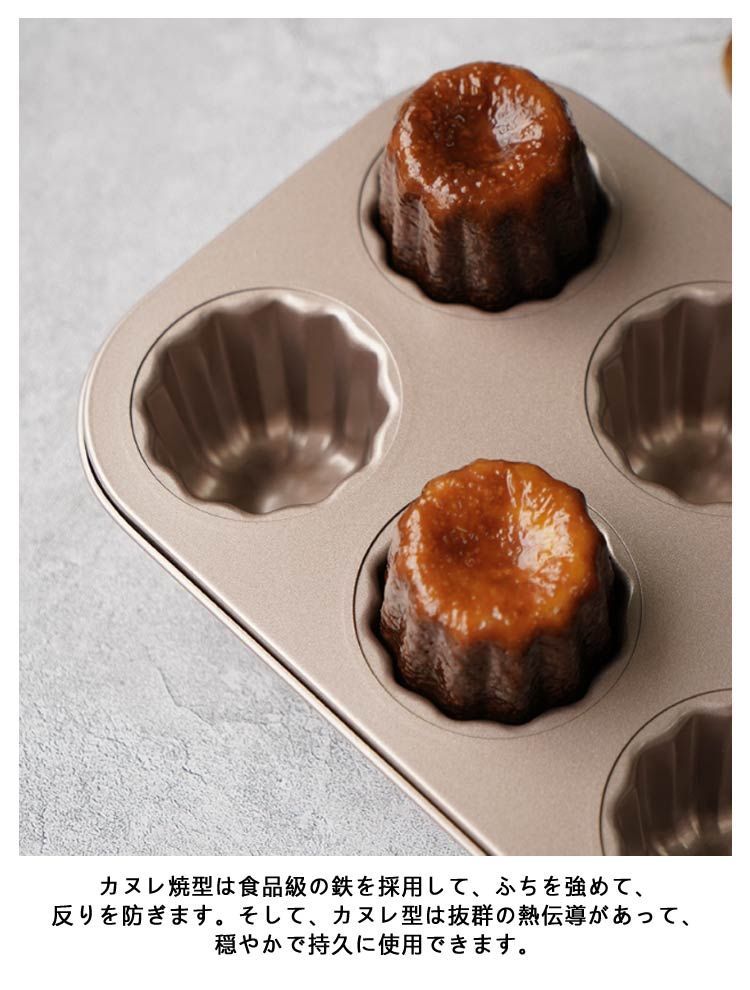 カヌレ焼き上げは、独特のシャンペンゴールドの配色があっで、特殊なカヌレのデザインに合わせて、見た目がきれいで、使いやすくなっています。