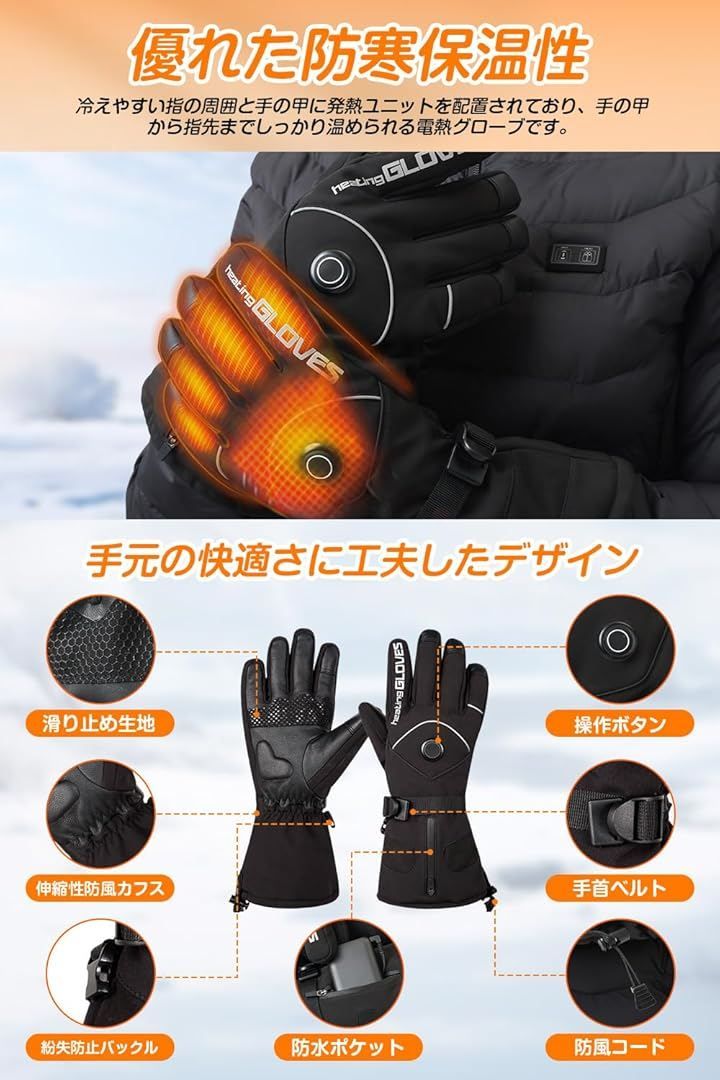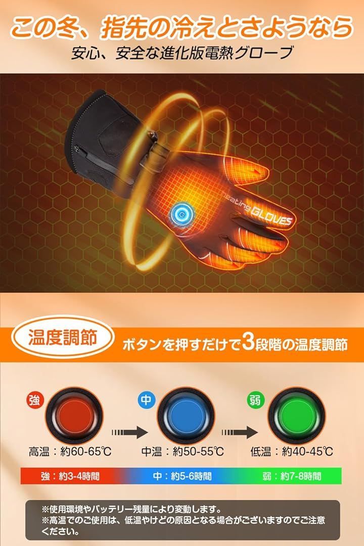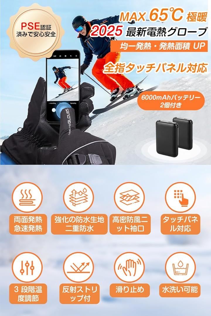 「3s急速発熱・ 両面立体発熱で手全体を温かく包みます」2025年冬最新モデルの防寒電熱グローブです。
