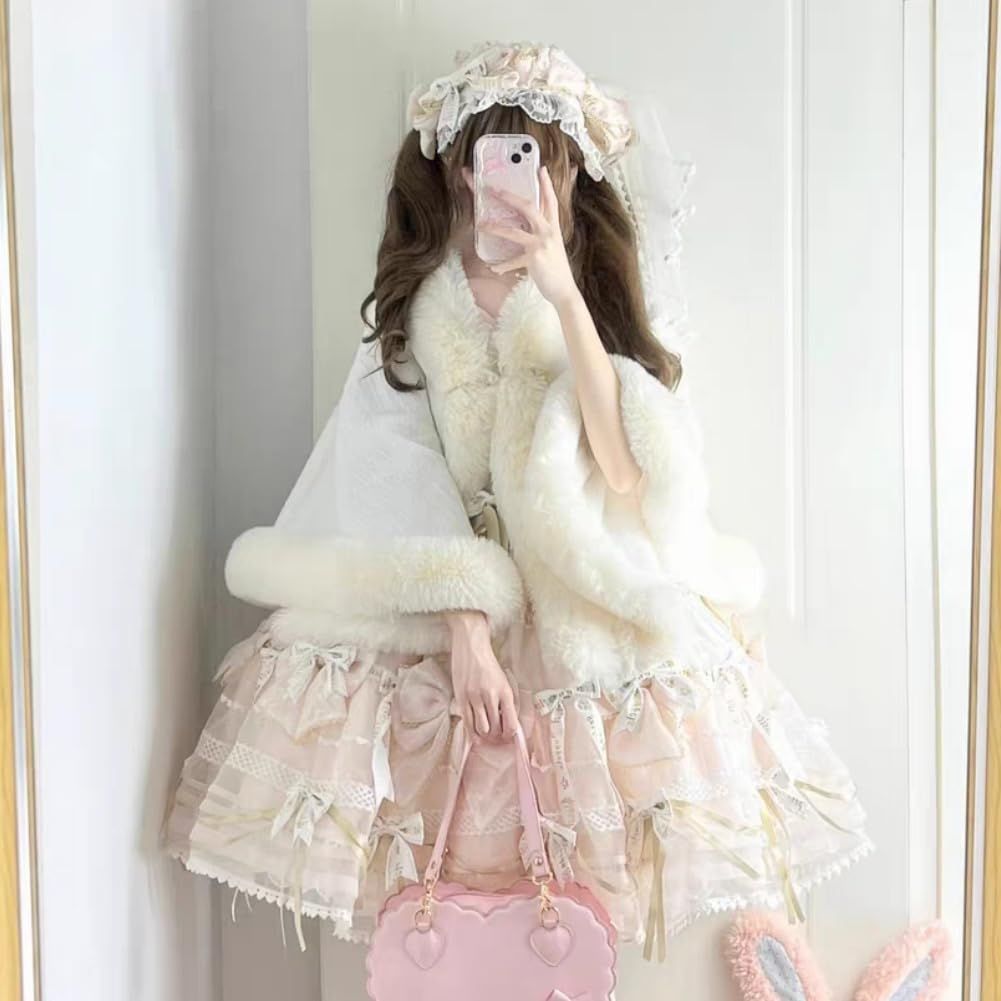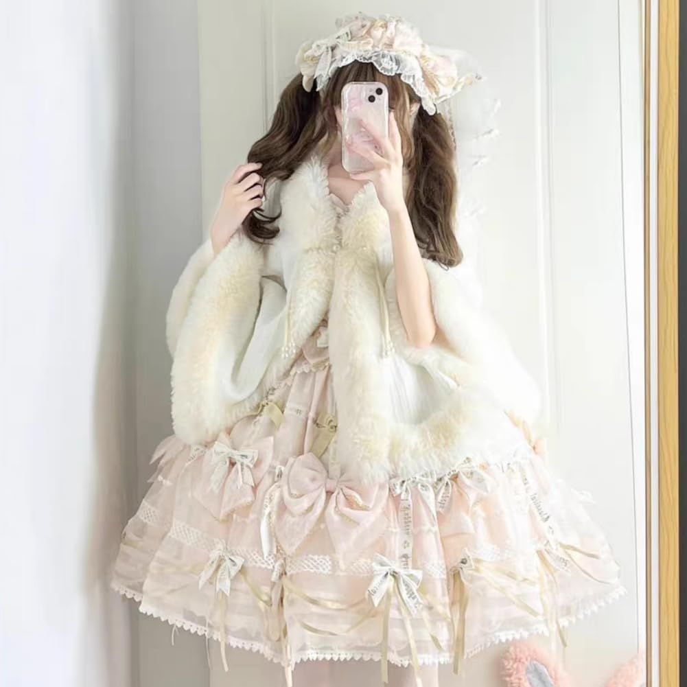 精緻なドローコードの詳細:前襟のドローコードの設計は真珠の装飾を持って、マントの締まり度を調節することができるだけではなくて、身の形にもっとフィットさせることができて、また全体の造形に精緻感を加えて、細部にロリー風の甘さとこだわりが現れます 萌え系モコモコキャップ:マントのキャップデザインは柔らかいモコモコで覆われ、縁のモコモコの装飾は暖かくて甘い要素を加え、丸みのあるキャップ型を組み合わせると、一瞬にしてロリー風のかわいい雰囲気を醸し出し、まるで童話の中のお姫様のようだ 柔らかいウール生地:選択したウール生地は肌触りが繊細で滑らかで、肌への親和性が優れており、着る時は雲に包まれたように、暖かくて快適であります。同時に、生地の保温性能は優れており、寒い天気に着用者に十分な暖かさを提供することができます マント版型デザイン:マントの版型はゆったりとしていて階層感があり、ロリータスカートを気軽に組み合わせて、完全なロリー風のスタイルを作ることができます。このタイプは体つきに包容性が高く、体形を選ばず、さまざまな体型のロリー風ファンがコントロールできます ワイルドスタイルの属性:この毛羽のマントのスタイルは鮮明で、異なる色系、異なるデザインのロリータスカートを組み合わせることができ、お茶会、コミケ、テーマパーティーなどの多くのロリー風シーンに適しており、甘いスタイルを作るための実用的なアイテムです 続きを見る この商品について