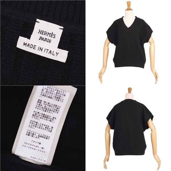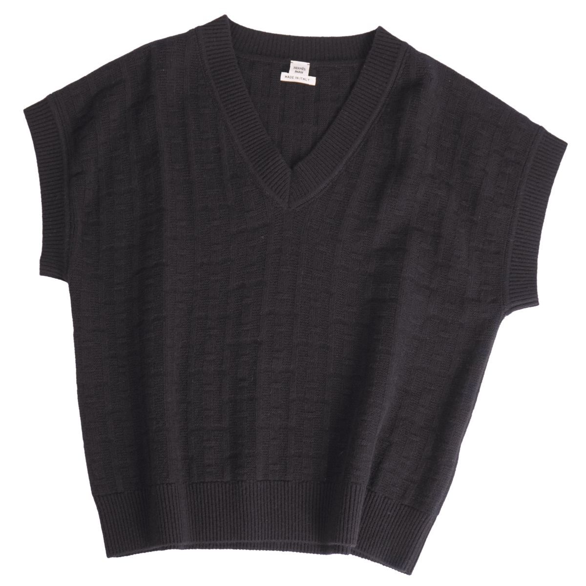 極美品 エルメス HERMES ニット 2023 セーター ノースリーブ Hロゴ ウール トップス レディース 36(S相当) ブラック