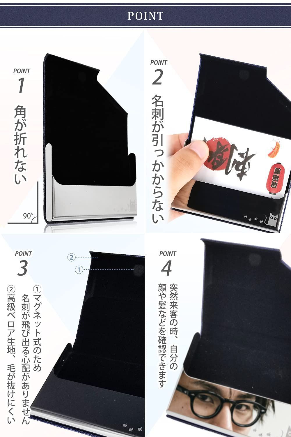 【折れる防止】名刺入れの内側は耐久性抜群のステンレス製、名刺が折れず・汚れずキレイな状態で保管できます。