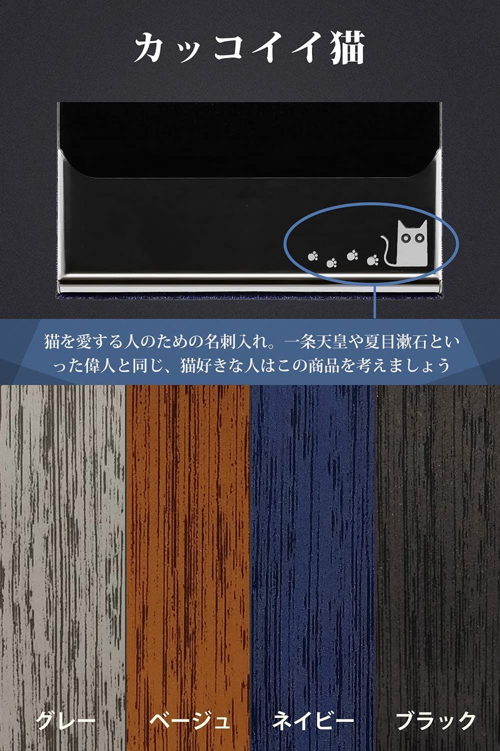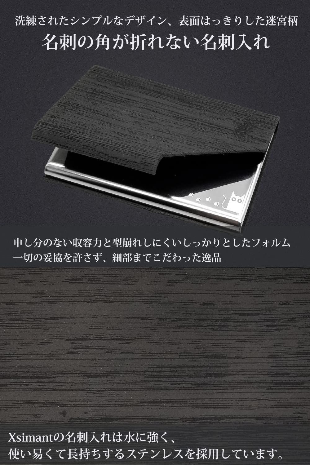 [Xsimant] 名刺入れ かっこいい猫 木柄 角が折れない 名刺ケース 男女兼用 マグネット式 1秒開閉 ビジネス (Black)